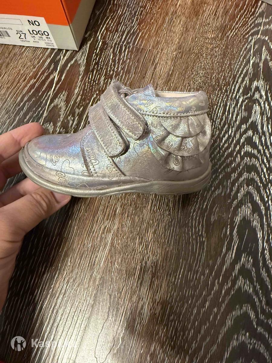 Ботиночки для девочки, серебристого цвета, кожа, Турция. Размер 22 ( 13,5 см)
