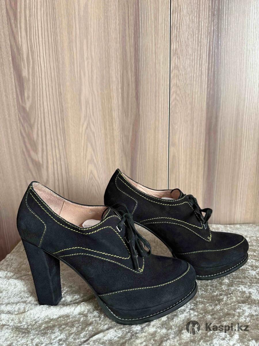 Ботинки Quartetto Размер: 37 Материал: натуральная замша. Цвет: чёрный с контрастной строчкой. Новые, не носились. Состояние идеальное. Аккуратная форма, устойчивый каблук. Есть коробка. Цена: 21 000 тг