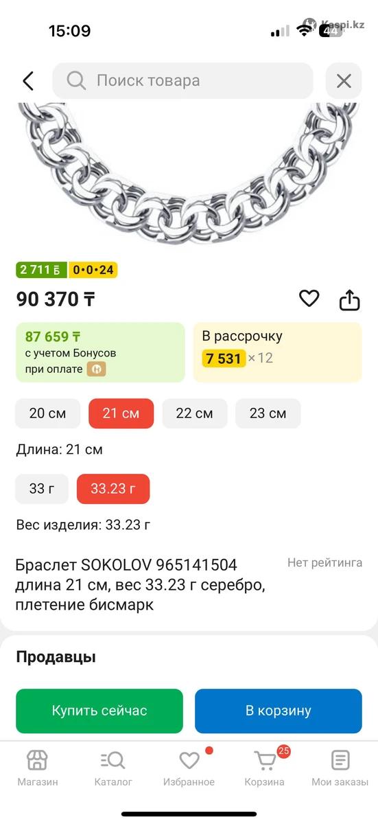 Браслет серебро Бисмарк 34г 21см Мужской Есть рассрочка на 12 мес +20% от стоимости