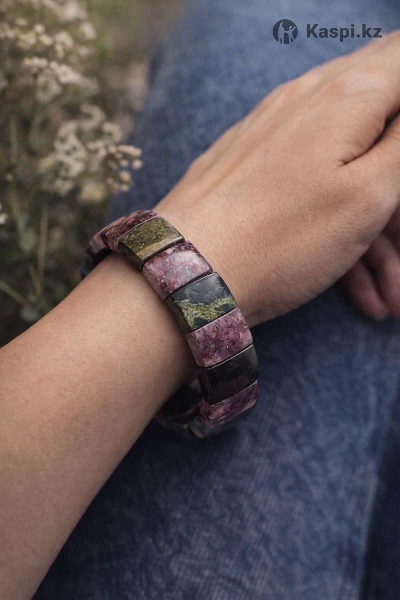Браслет из натурального турмалина Стильный браслет из натурального турмалина с глубокими, насыщенными оттенками — розово-ягодными, темно-зелеными и графитовыми. Каждый камень уникален по рисунку и цвету, за счет чего браслет выглядит дорого и выразительно. Турмалин ценят не только за красоту, но и за универсальность: он легко вписывается как в повседневные образы, так и в вечерние комплекты. Украшение подчеркивает запястье, смотрится статусно и гармонично на руке. Браслет собран на прочной эластичной основе, комфортно сидит и подходит для ежедневной носки. Натуральный камень, без окрашивания и имитаций. Идеальный вариант для подарка или как акцентное украшение в личной коллекции.