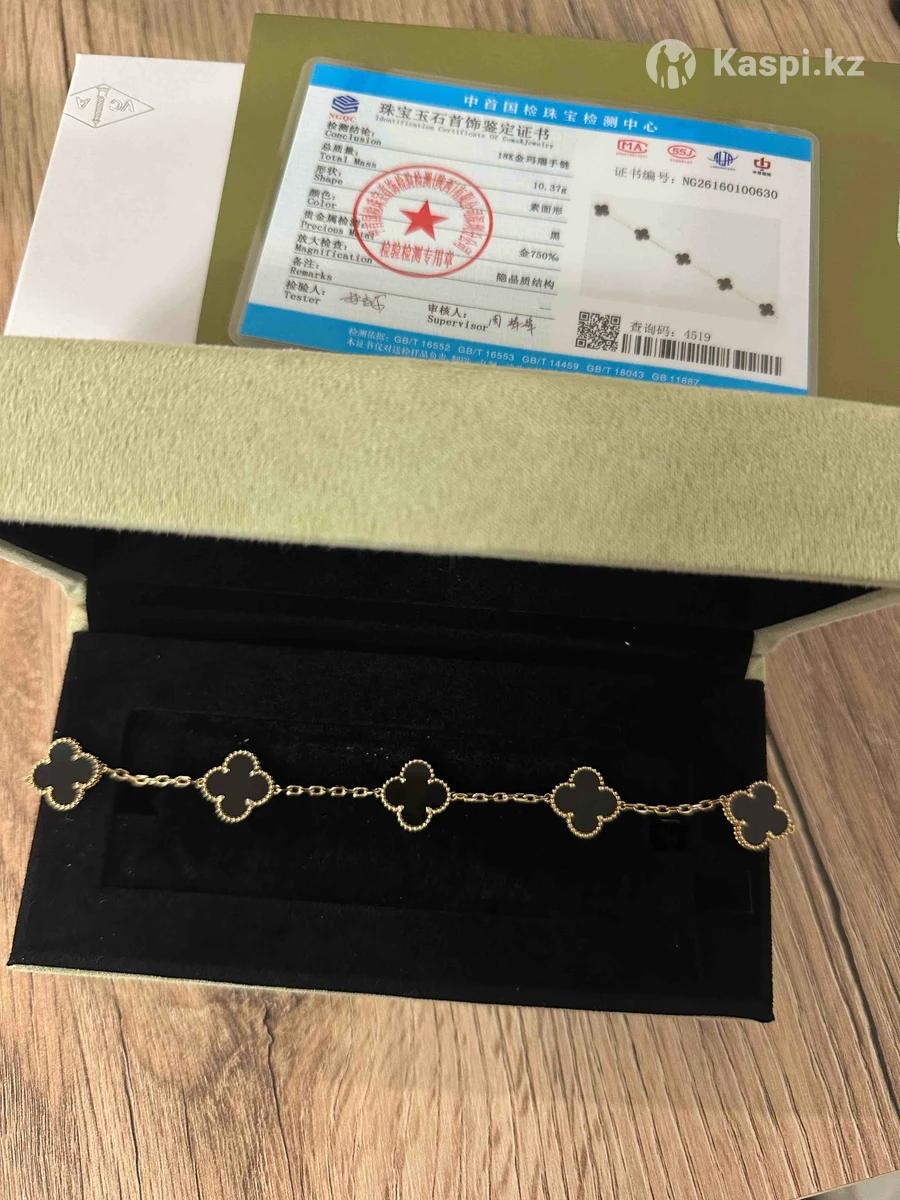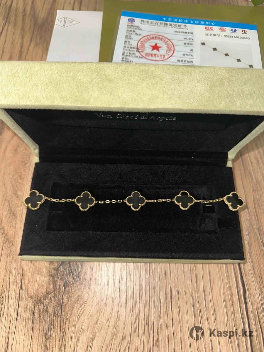 Продам абсолютно новый браслет от van cleef & arpels Alhambra vintage 18 карат.золото 750 пробы,10.30 грамм натуральный камень оникс .размер подходит до 19. Изделие полностью идентично оригиналу 1:1