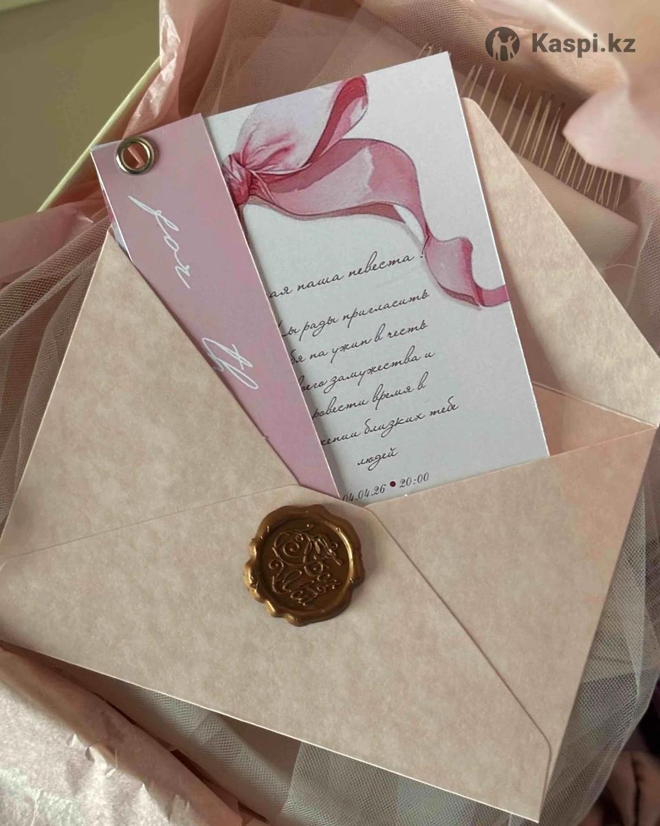Пригласительно для невесты🎀 Выберите свой цвет и тематику, все сделаю🤍 1.Фата 2м 2.Лента невесты 3.Топперы 6-10 шт 4.Шелковая резинка 5.Конверт с пригласительным