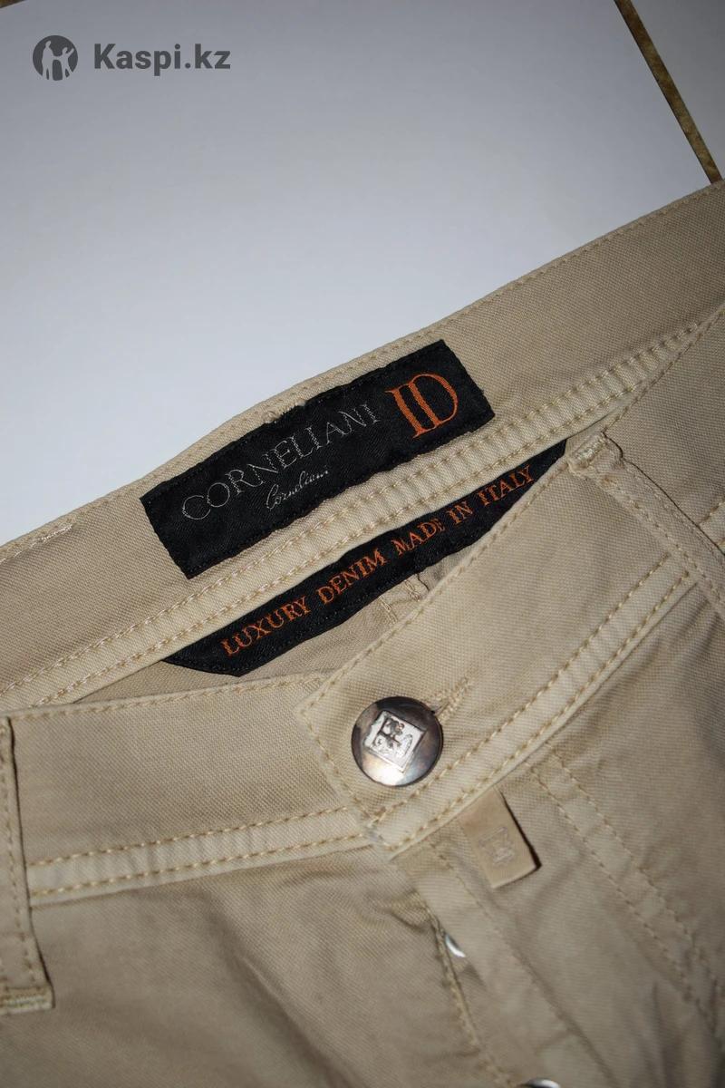 Оригинал. Премиальная линия ID от итальянского дома Corneliani. Модель в стиле 5-pocket pants (Luxury Denim), выполнена из высококачественного хлопка с добавлением эластана — ткань мягкая, идеально держит форму и очень комфортна в носке. Цвет универсальный бежевый (песочный). Брендированная фурнитура, кожаный патч с логотипом. Made in Italy 🇮🇹. Состояние идеальное (как новые). Ритейл пары составлял около 250 000 тг. Отличная база под пиджак или кэжуал образ.