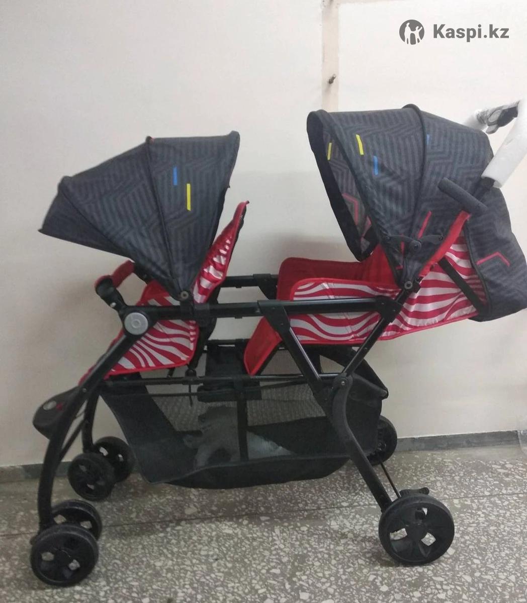 Почти новая коляска для двух деток. Подходит для погодок. Для двойняшек. Опускается только заднее сиденье. Очень удобное, легкое. в собронном виде мало места занимает. Легко собирается.