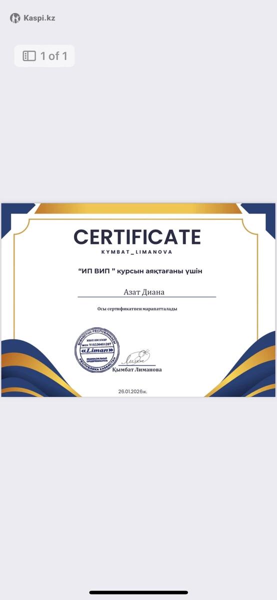 Мен ИП және шағын бизнес үшін бухгалтерлік қызмет көрсетемін: •ИП тіркеу жабу ,салық режимдерін таңдау •910, 911, 913 есептілікті тапсыру •Касса, банк, ЭСФ, құжаттарды жүргізу •Жалақы, әлеуметтік төлемдер, декрет Кәсіби бухгалтердің оқушысы