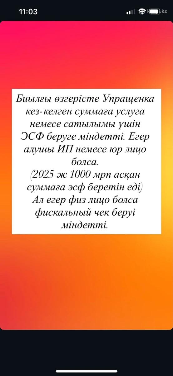 ИП ашу/жабу/ жүргізу ТОО ашу/жабу жүргізу Барлық Отчеттар (910,200,220,100,300,700,270,250,328,870,920,913) Статистикалық отчеттар Счет на оплату/АВР/Накладные/ЭСФ жасау Камеральный контроль уведомлениесімен жұмыс Счеттағы налоговый қойған арестті шешу