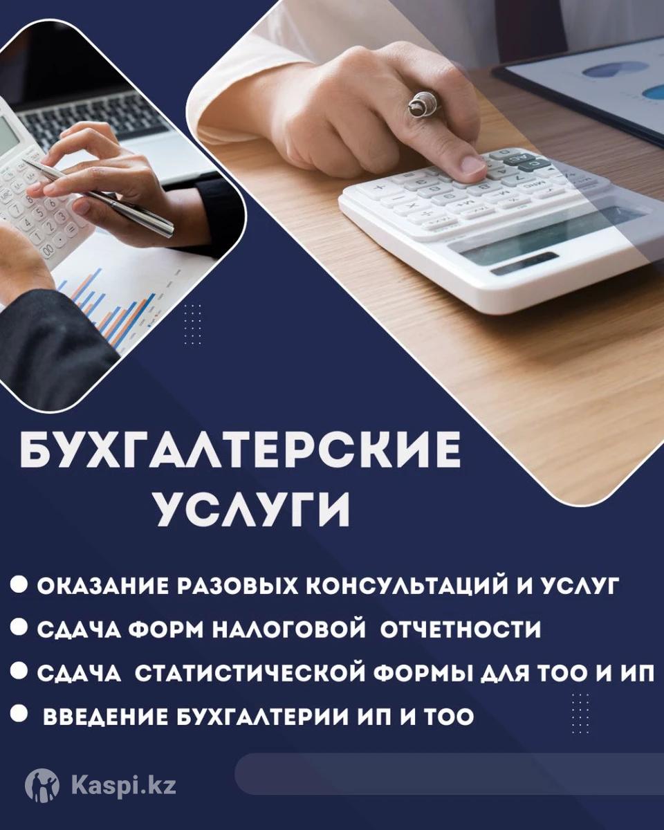 Бухгалтерские услуги, Консультация бесплатно Сдача налоговых и статистических форм отчетностей Разовая отправка документов – ЭСФ/ Акты выполненных работ /ЭАВР/ Счет на оплату и т. д Открытие и ликвидация ИП/ТОО Введение бухгалтерского учета ИП/ТОО Регистрация на портале ИС ЭСФ Услуги Elicense Восстановление учета Начисление зарплаты Начисление и перечисление всех видов налогов Снятие с арестов Введение базы 1С Опыт работы 15 лет на должности Главного бухгалтера Профессиональная этика, гарантия качества и конфиденциальности.