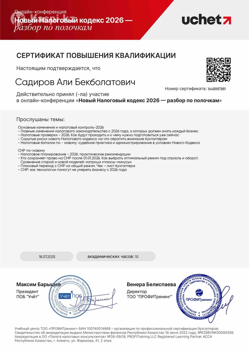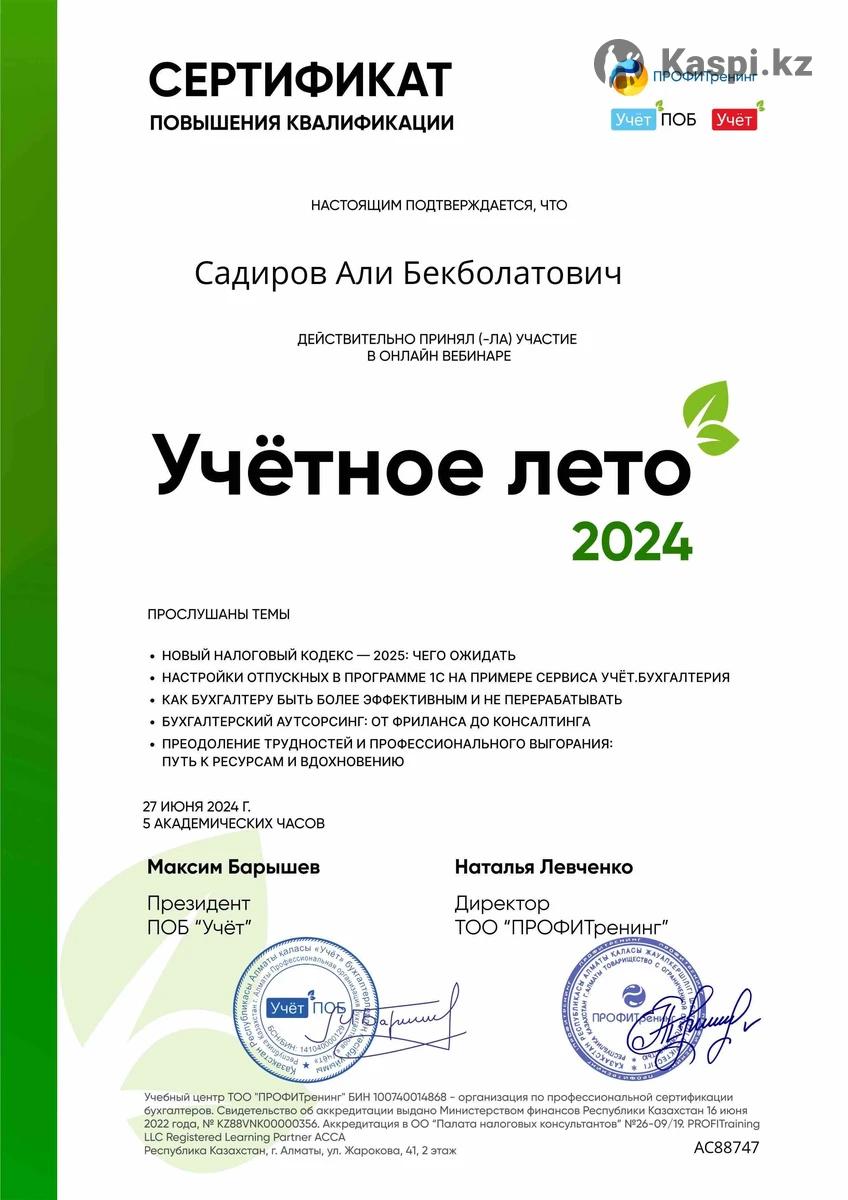 Квалифицированная услуга бухгалтера Начисление ФОТ, декретных, отпускных, больничных ИС ЭСФ, СНТ, АВР, счета на оплату Эквайринг, банки Отчетности ФНО 100,200,700,910,913 Статистические отчеты Оптимизация налоговых обязательств и платежей ( в зависимости от вида налогообложения) Введение внутренних программ как R-keeper, Aiko Составление и расчеты калькуляционных и технико-технологических карт, акты переработок Кадровое дело приказы перемещение личные дела Инвентаризации ТМЦ