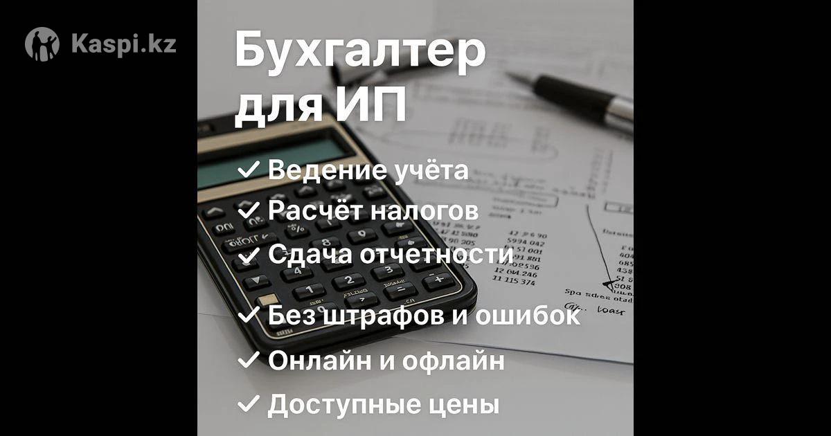 бухгалтерские услуги: - Создание удаленно - Открытие ИП/ТОО -Закрытие ИП/ТОО - Помогу выбрать оптимальный налоговый режим для вашего ИП - Редактирование реквизитов ИП, получение талона , свидетельство на постановление НДС и другие реквизиты - Расчет соц платежей и налога ИП , расчет пени -пособия о безработицы - Закрытие/Приостановление ИП - Работа с новым налоговым кабинетом ИСНА - Регистрация трудового договора в Енбек.кз - Выписка документов АВР, накладные , ЭСФ, СНТ - Сдача налоговых деклараций 910/200/220 - Отзыв налогового отчета , замена налогового отчета - Сопровождение в декрет ( получение максимальной выплаты ) - кредитный отчет - мед.строховка выписка - упращенка - камералка
