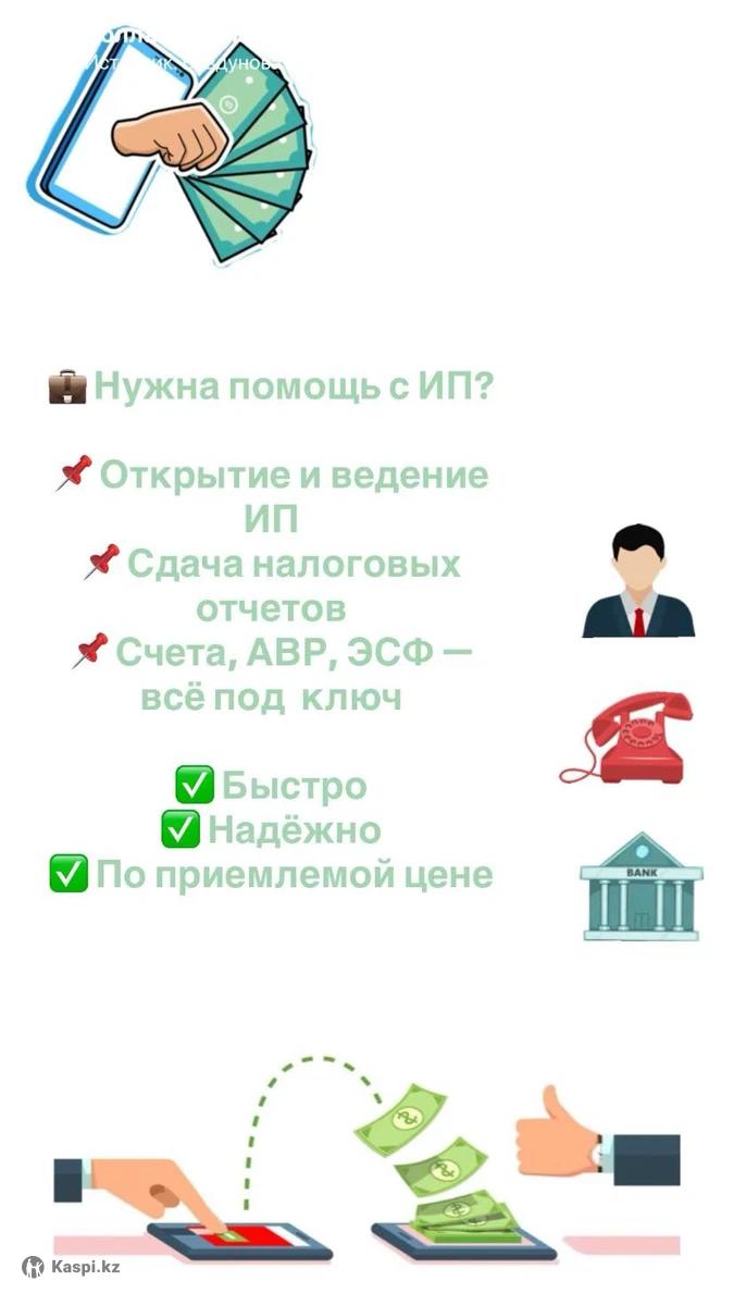 Открытие и ведение ИП, Сдача налоговых отчетов, Выставление счетов,АВР,ЭСФ