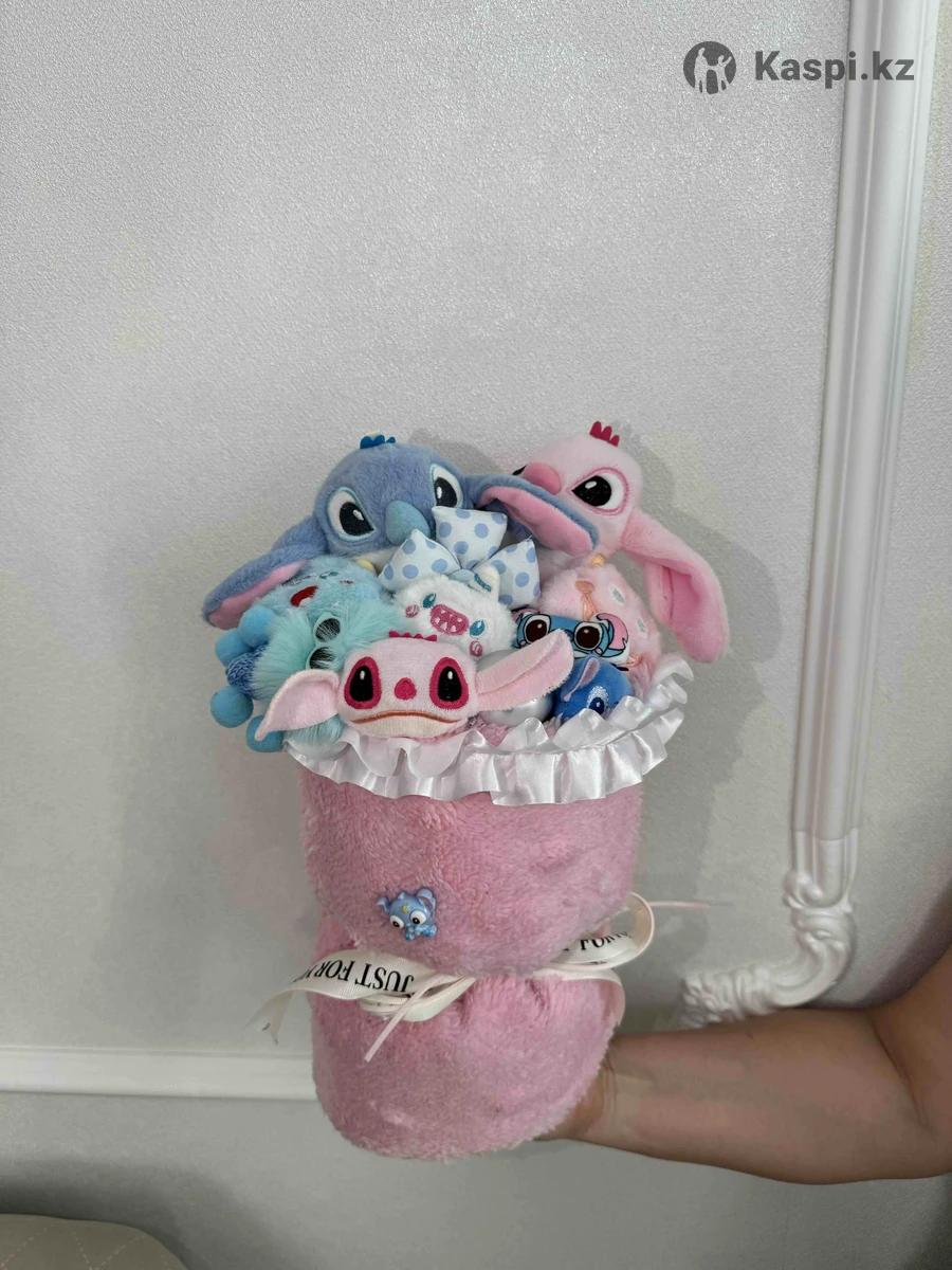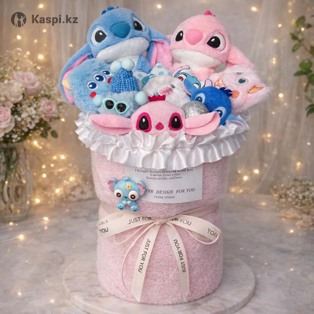 Букет «Лило и Стич» 💙🌺 к 8 Марта Идеальный подарок для девочек и девушек, которые любят милые и необычные вещи. Это отличный вариант вместо обычных цветов, которые завянут через несколько дней — такой букет останется с вами надолго и будет радовать каждый день. Размер: 40 × 20 см. Цена: 9000 тг В подарок идут пакет и открытка 🎁 ✉️Писать на :