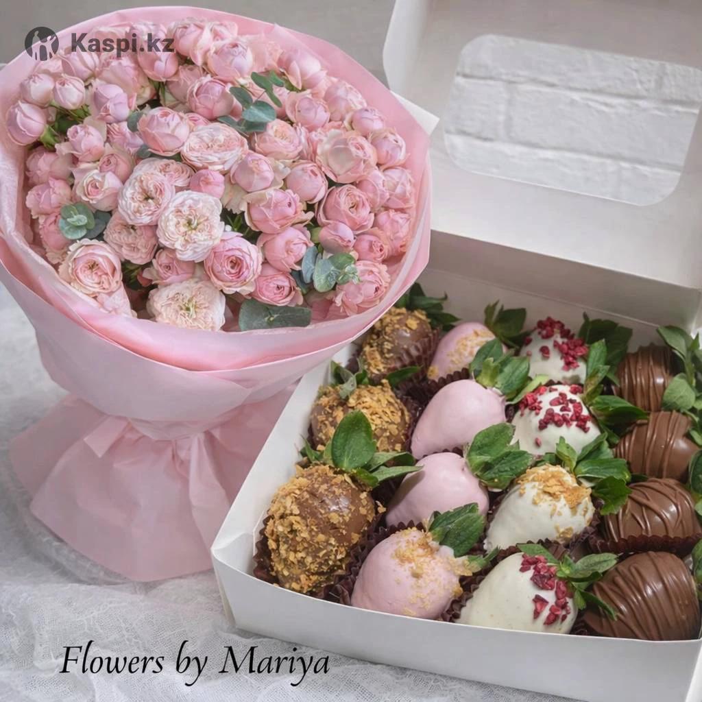 Букет спрей роз и клубника в шоколаде