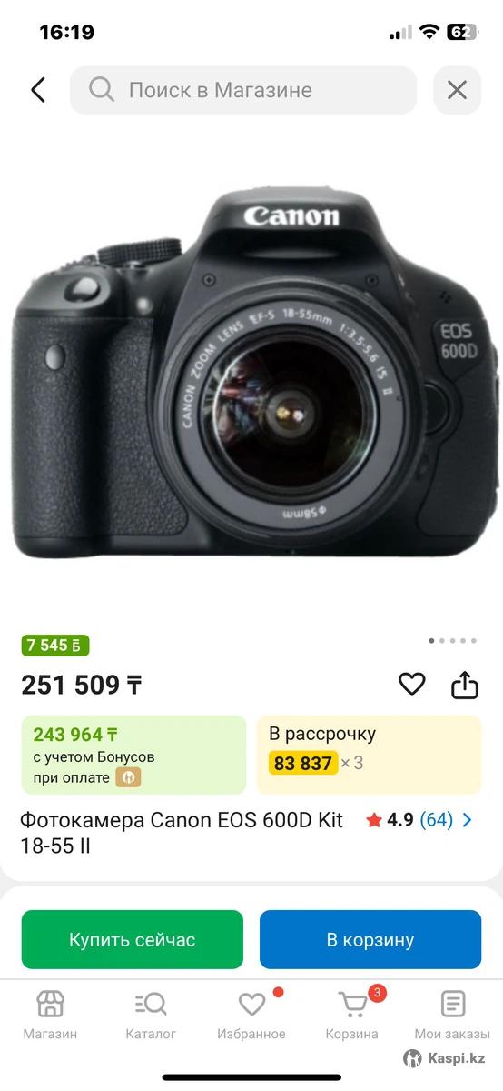 Canon 600d в хорошем состонянии, в комплекте батарейка, зарядное устройство, сумка. Фотоаппарат полностью исправен, из минусов отсутствует карта памяти.
