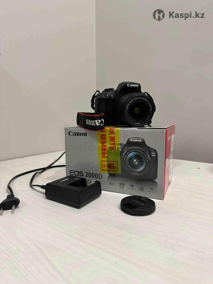 состоянии, идеальный вариант для начинающего фотографа или для творчества! Рассрочки нет, оплата наличными имеет скидку побольше Комплектация: • Canon EOS 2000D (body) • Объектив Canon EF-S 18-55 III Kit • Батарея и зарядное устройство • Крышки объектива • Ремень для переноски Характеристики: • Матрица: 24.1 МП APS-C CMOS — чёткие, детализированные фото • Процессор: DIGIC 4+ • Видео: Full HD (1080p) — качественная • Свесъёмкаточувствительность: ISO 100–6400 (расширяемое до 12800) • Система автофокуса: 9 точек • Экран: 3” LCD, удобный для просмотра снимков • Подходит для: портретов, уличной, пейзажной и повседневной Камера рабсъёмкиотала аккуратно, без падений и повреждений. Все функции исправны, объектив чистый, пыли и царапин нет