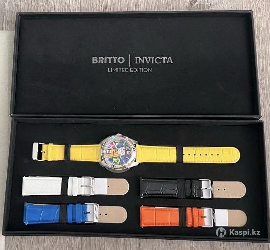 Если телефон не отвечает. Пишите пожалуйста на . Продаются! Новые! С циферблатом с радугой цветов и коллекцией смелых узоров, разработанных бразильским художником Romero Britto, чтобы принести здоровую дозу счастья и позитива в ваш день! Пять различных цветных кожаных ремешков позволяют вам мгновенно переключить свой стиль. Независимо от того, с каким нарядом вы его сочетаете, эти часы вызовут улыбку на вашем лице! Лимитированная версия. Эксклюзивный номер 0083 из 1000. Ремешок меняется за одну минуту (очень просто и легко) Сами поменяете под ваш цвет гардероба. Подробнее: Механизм: Швейцарский Кварцевый Размеры корпуса: 43мм Материал корпуса: нержавеющая сталь Безель: Фиксированный Ремешок: Кожа 5 штук. Застежка: Пряжка Часы поставляются в комплекте с ограниченной серией часов Invicta Britto с 5 кожаными ремешками. Отправлю по Казахстану бесплатно. Смотрите другие мои объявления. Также бывают модели Швейцарские часы Jacob & Co Audemars Piguet Patek Philippe Rolex Tudor Mido Oris Omega Jaeger Lecoultre Cerruti Bvlgari Ball Luminor Panerai Kolber Cover Cloud Bernard Bernhard Fossil Festina Hamilton U-boat Montblanc Perrelet Diesel Tag heuer Rado Invicta