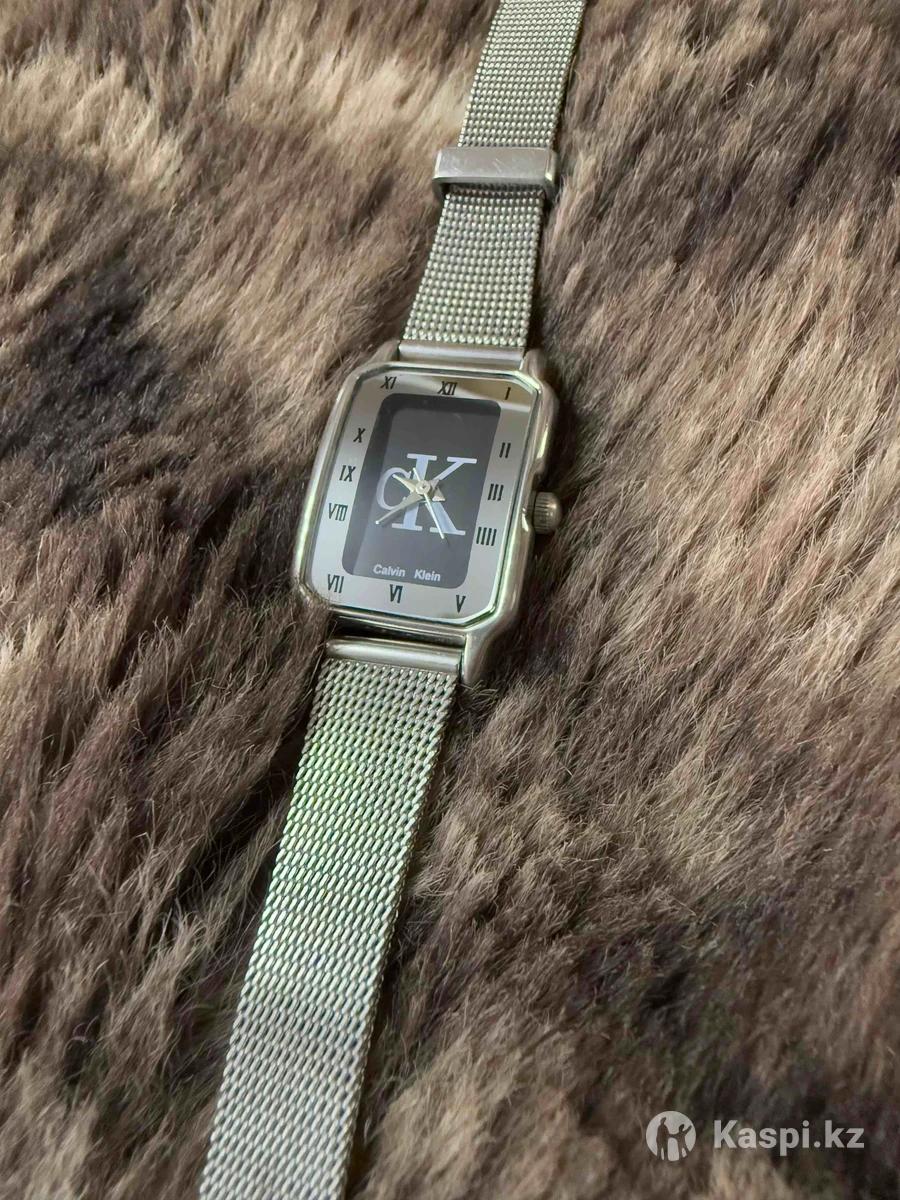Часы Calvin Klein женские, в отличном состоянии. Часы серебристого цвета, прямоугольной формы, без подсветки, цифры - римские, материал корпуса и браслета-сталь. Коробки от часов нет, царапин нет.