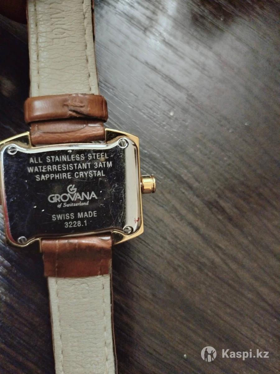 Швейцарские часы наручные женские Grovana. Позолоченные, сапфировое стекло. Два циферблата. Водозащита 3 АТМ Ремешок кожаный, потертый