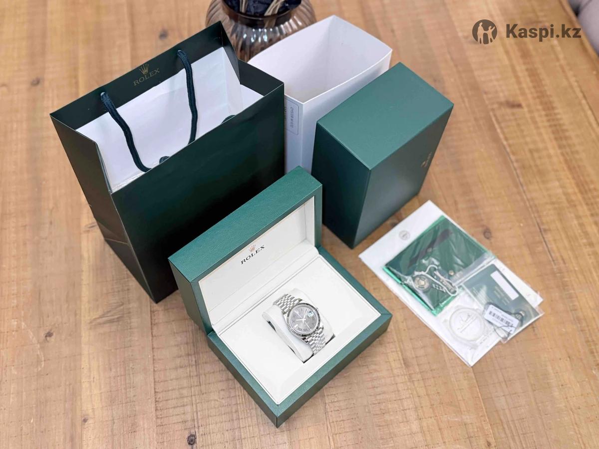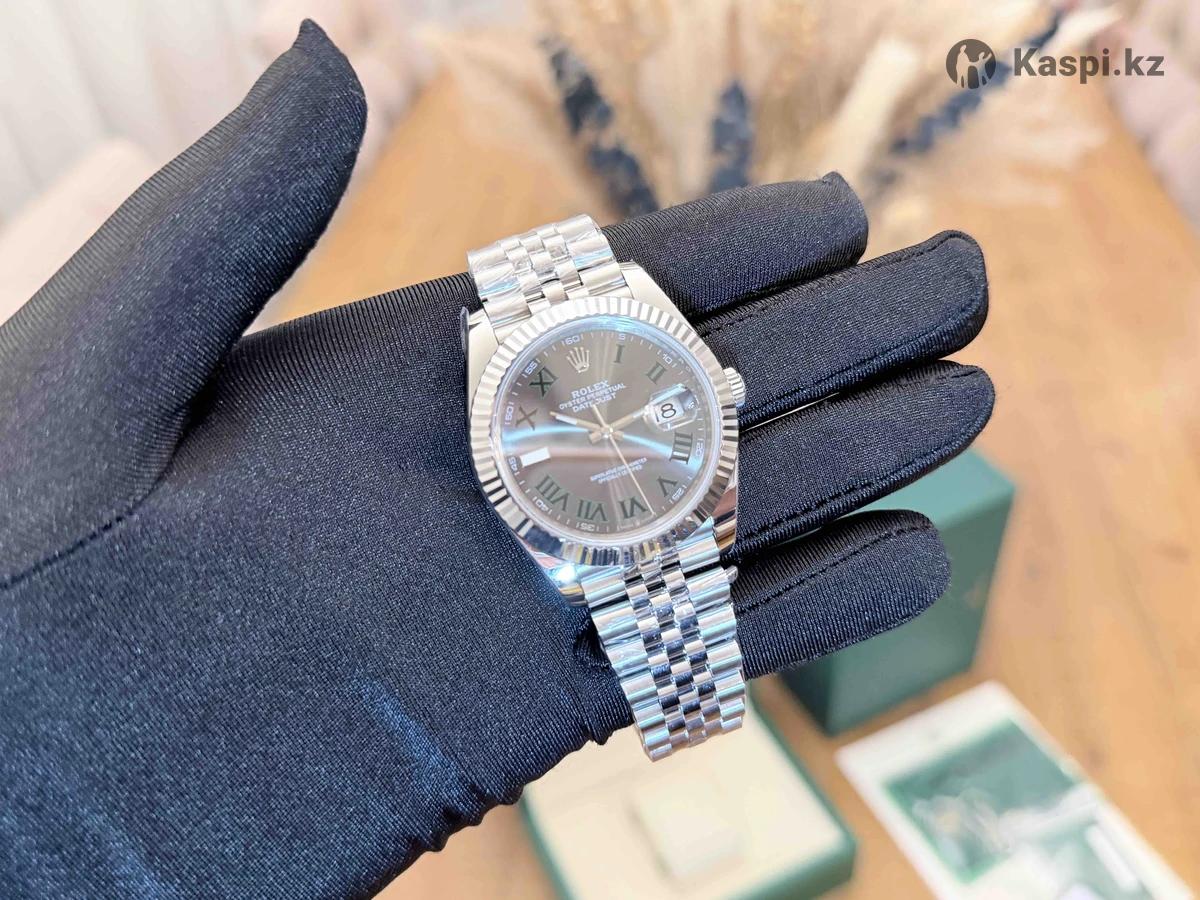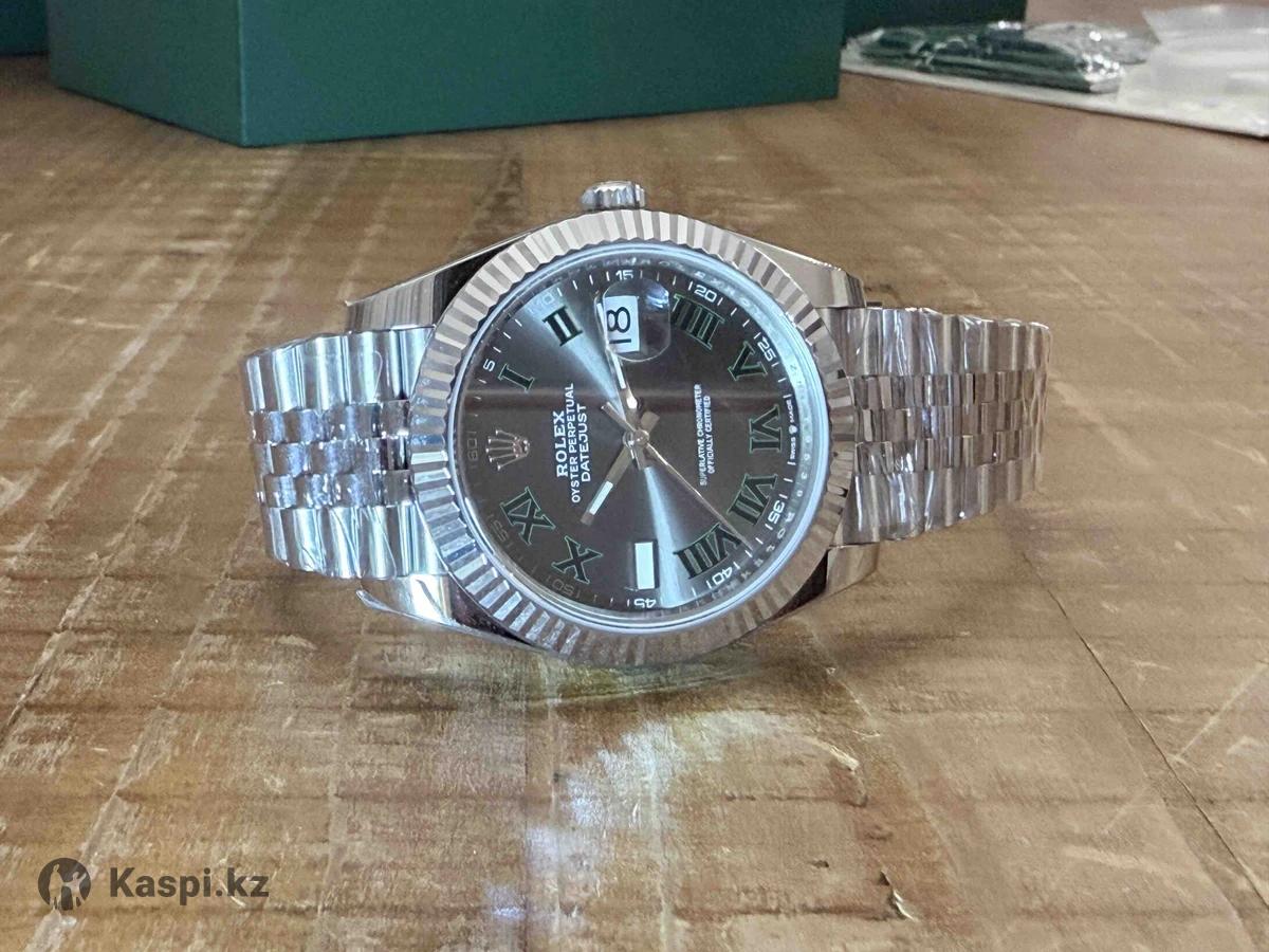 Часы Rolex Datejust 41 Wimbledon. 41 mm. Ref. . Очень красивый серый родиевый циферблат с метками в виде зеленых римских цифр. Сапфир. Сталь. Юбилейный браслет. Дата. Механизм 3235 с запасом хода в 70 часов - самый топовый аналог. Часы, которые собирают взгляды. Самое высокое качество на рынке по данной модели. Все фотографии живые. В комплекте коробка, бумаги, карта с NFC меткой и серийным номером как на часах, и подарочный пакет. Часы абсолютно новые, в пленке, в наличии в Астане. Большое количество часов в наличии. Практически любая модель часов на заказ по фотографии. Смотрите раздел «Другие объявления», там много интересного.