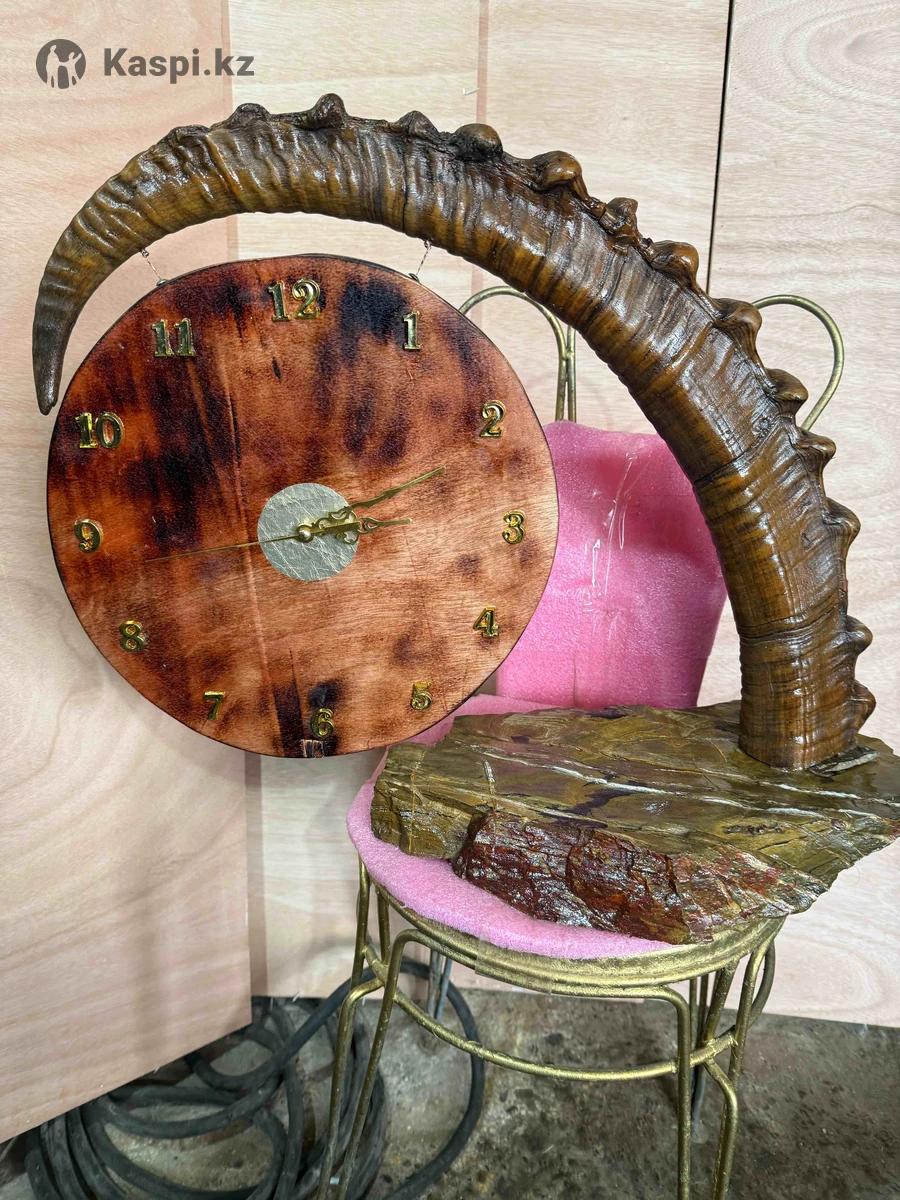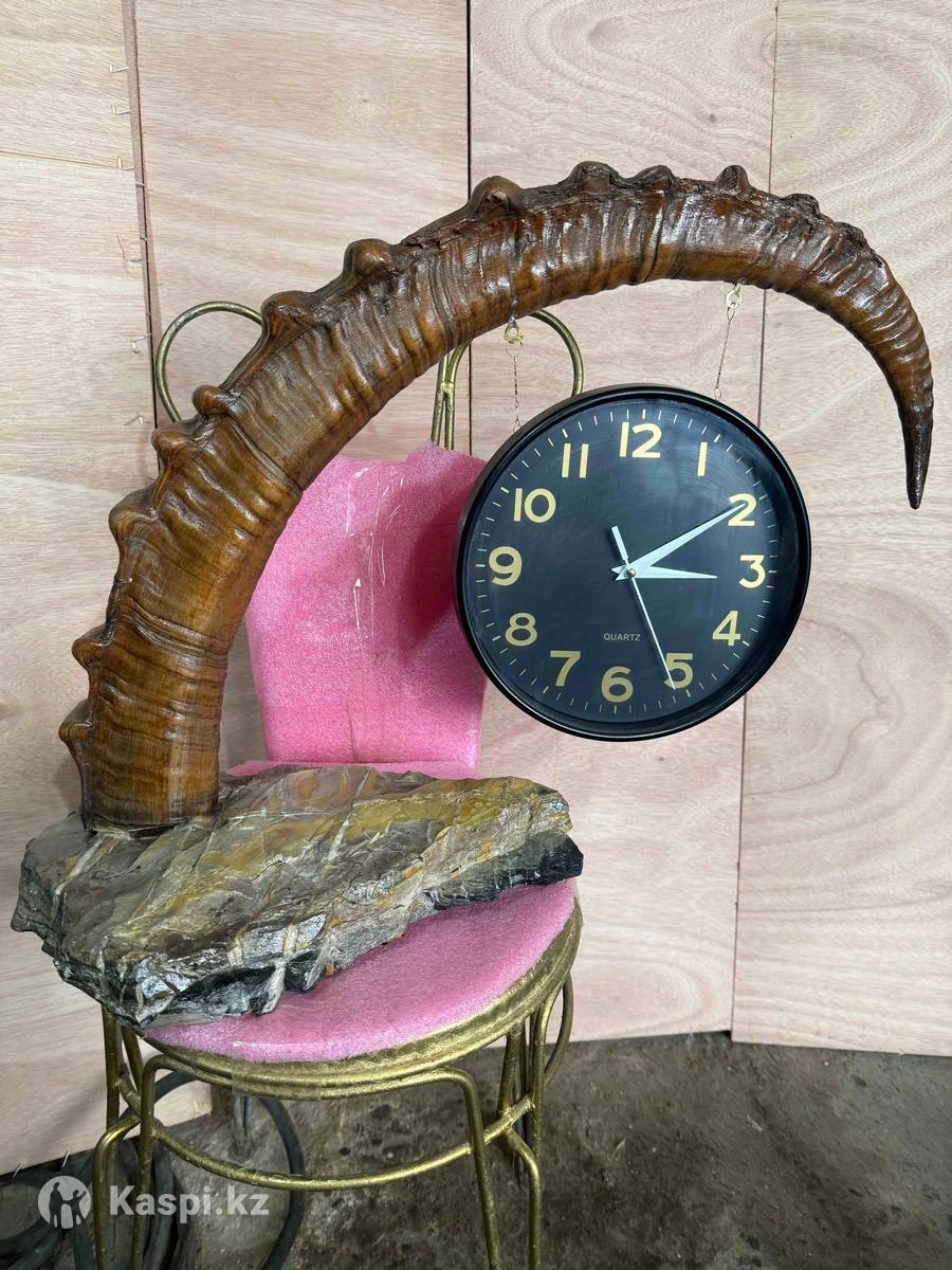 Часы ручной работы с рогами горного козла на кварцитном камне, покрыты бесцветным лаком. Работают от батарейки 1,5В часовой механизм заводской
