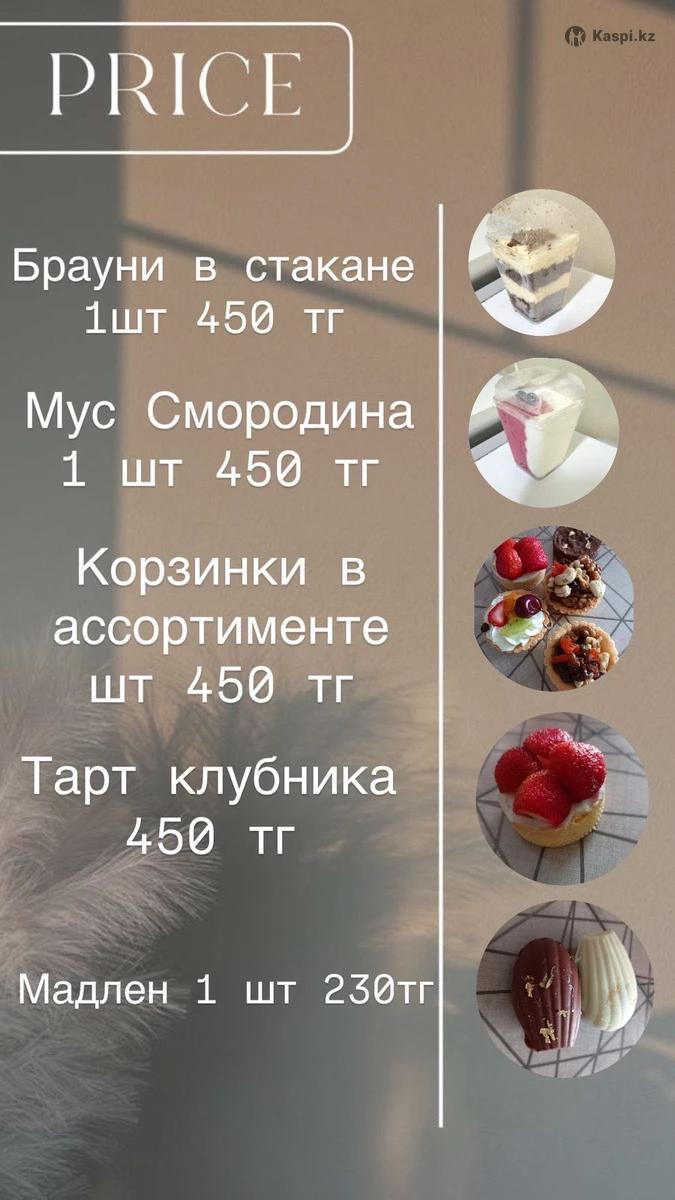 Кафе Рестораны Столовую предлагаю свою домашние выпечки,пироги , блины,,десерты баурсаки тарт,мус в и.т.д к доступный цены пишите в личку