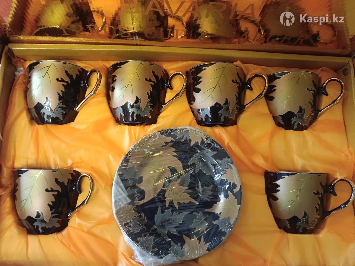 Чайный набор из 6 блюдец и бокалов. Достойный подарок на свадьбу, день рождение или в приданое. Красивая подарочная золотая коробка. Писать на .