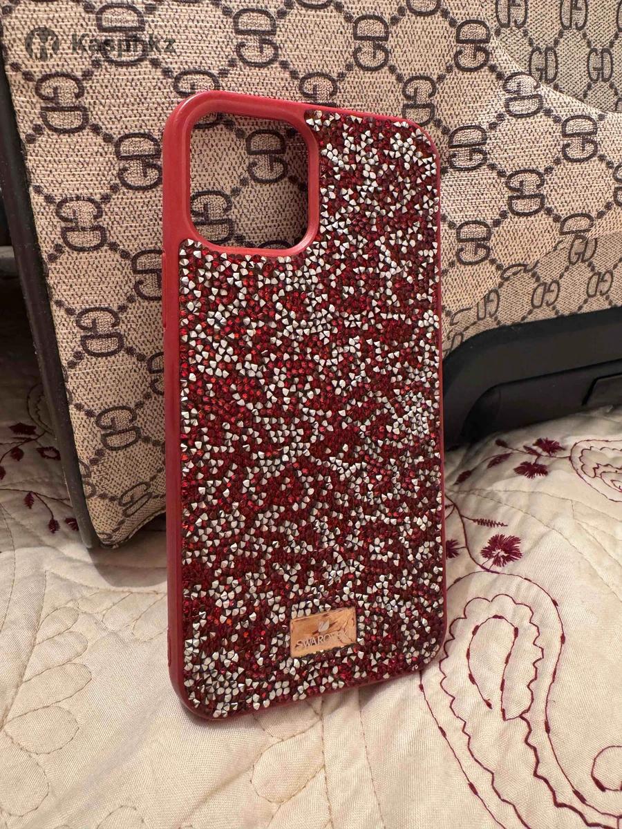Чехол Swarovski , бордовый цвет , покупала за 15 000 тг , айфон 12 подойдет