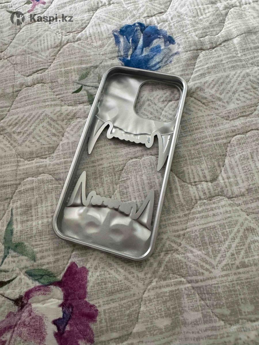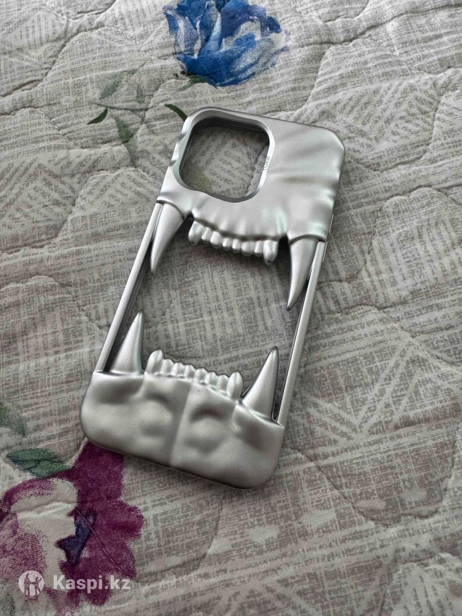 чехол с зубами, на айфон 15 про макс, серебряного цвета