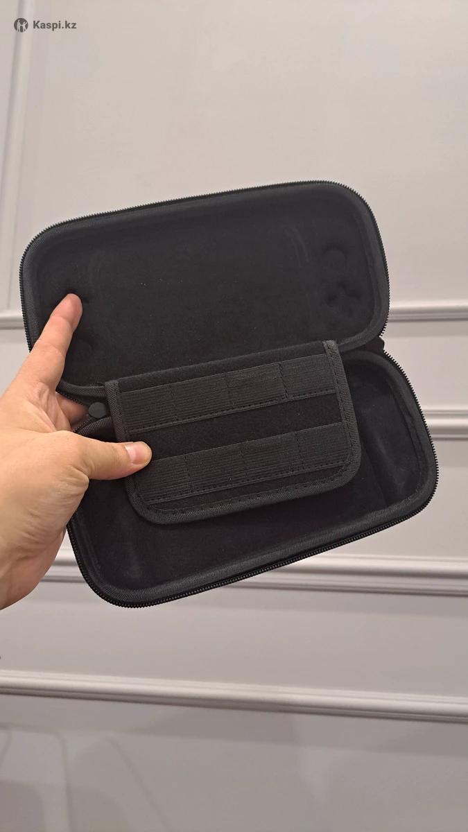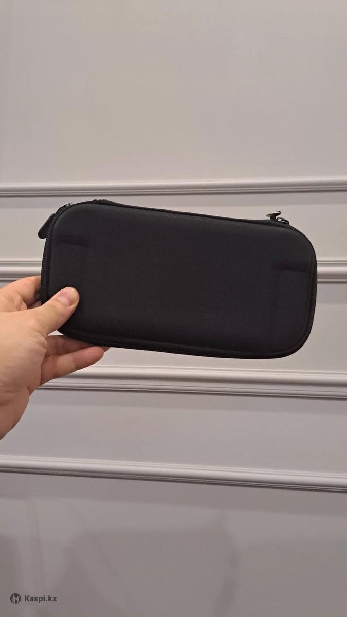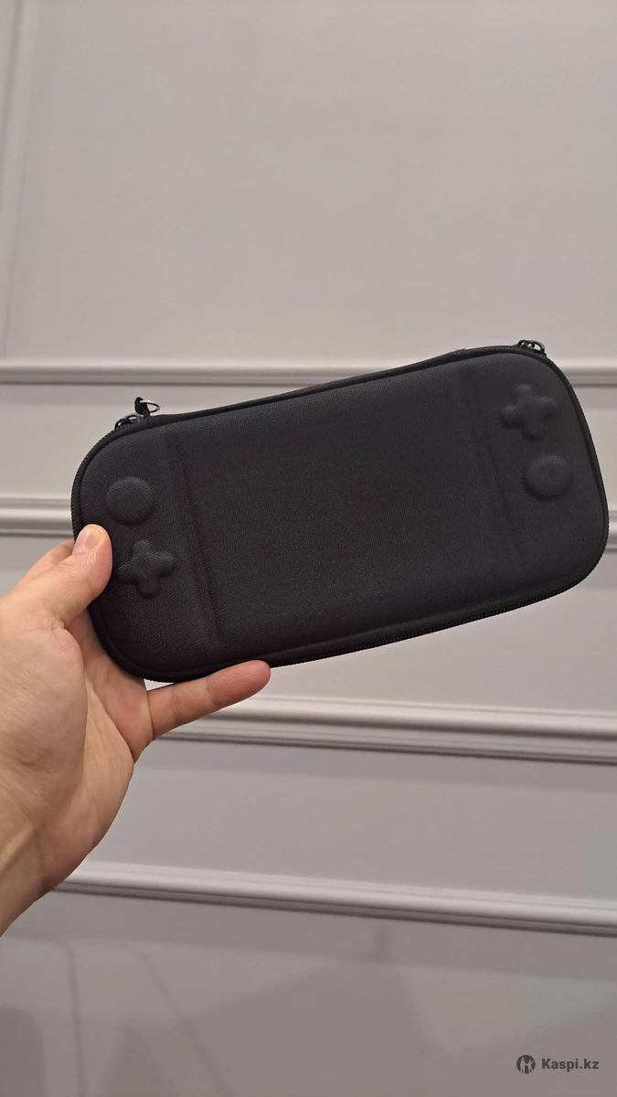 Чехол прямоугольной формы, с закругленными краями. Цвет – черный, выполнен из плотного материала. На внешней стороне есть рельефные элементы в виде кнопок (крестовина, стики и кнопки), имитирующие переднюю панель консоли. Закрывается на молнию, по бокам видны два бегунка. Предназначен для хранения и защиты консоли Nintendo Switch Lite от ударов, пыли и царапин. Есть отделение для картриджей и сетка для аксессуаров.