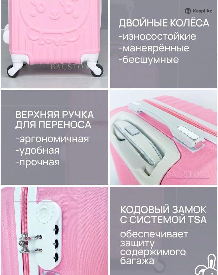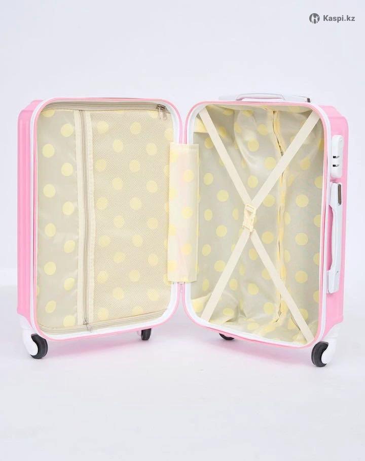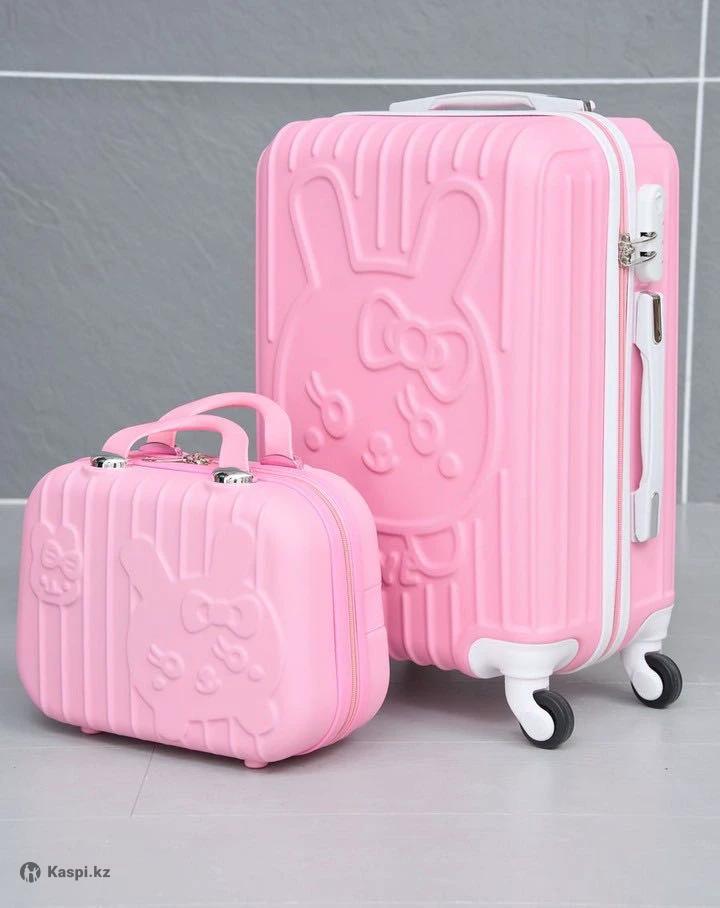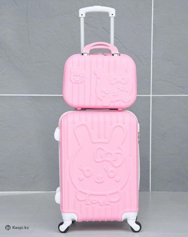 Чемодан детский на колесах с сумкой дорожной. Особенности чемодана TSA замок, выдвижная ручка и ударопрочный. Объем: 45л Материал: гелиевый пластик Размер чемодана: S (до 60см) Цвет: розовый В комплекте есть дорожная сумка вместительная и компактная
