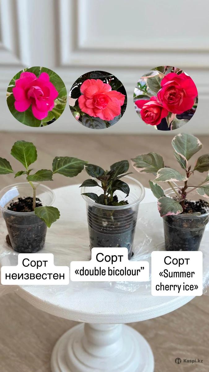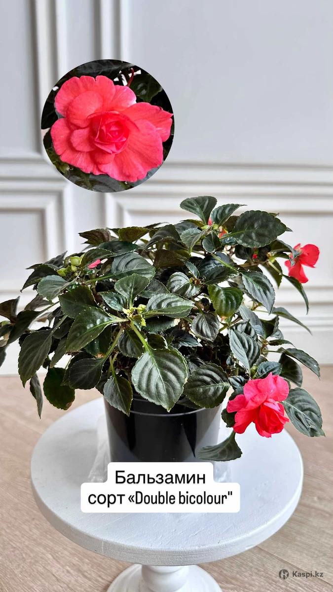Вариегатный бальзамин сорта «Summer cherry ice” Растет пышным кустиком. Формируется самостоятельно с черенка. Очень выносливый сорт. Цветет охотно. Листва белозеленого цвета со слегка розоватым оттенком. Цветы махровые в форме розочки ярко пурпурного цвета. Бальзамин сорта «Double bicolour” с яркими цветами на фоне темной насыщенной листвы. Также формируется самостоятельно и охотно цветет. При хорошем свете не вытягиваются.