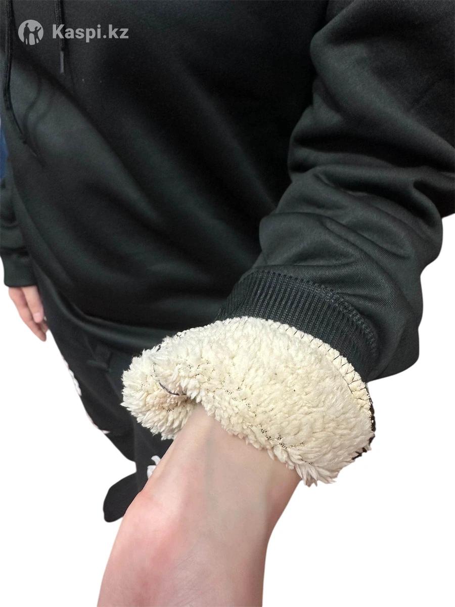 Черный худи с капюшоном материал- полиэстер размер М внутри с мехом