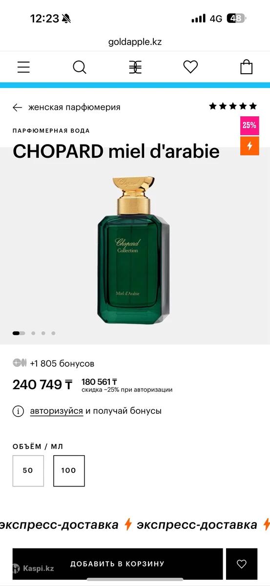 Парфюм Chopard Collection , Miel d’Arabie , аромат , подойдет как подарок и мужчине и женщине. Оригинал 1000000% купленный в Швейцарии ,мне привез молодой человек, сейчас с ним не встречаемся, парфюм просто лежит , жалко , решила продать , в золотом яблоке он стоит 240 тыс 100ml, отдам за половину цены (чехол, коробка, пакет , книжечка, по qr можете пробивать что это оригинал, каким угодно образом проверять, ) . Единственное один раз в самом начале, проверить аромат, на чехол пшикнула и на чехле чуть пятнышко появилось, только заметила. Больше даже ни разу не открывала.
