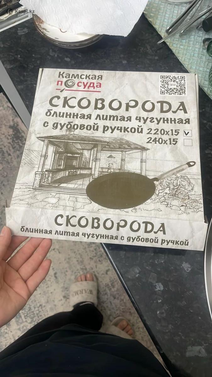 Чугунная сковородка от Камской посуды, качественная , покупала за 9.000 2-3 раза использовала только, так и не научилась на ней готовить