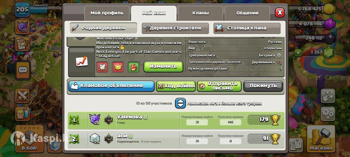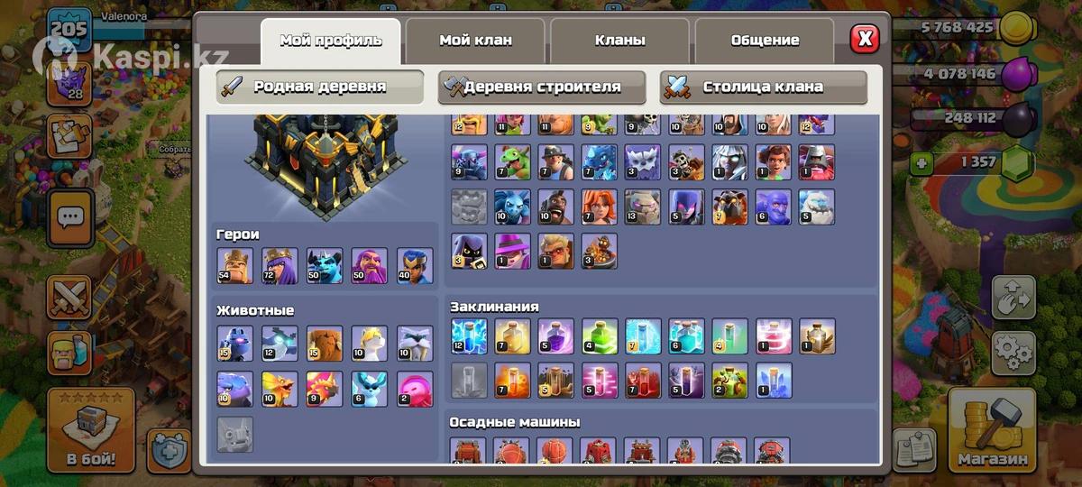 Clash of Clans база 200 уревен аккаунт сатылады барлығы сүреттегідей Ратуша 17