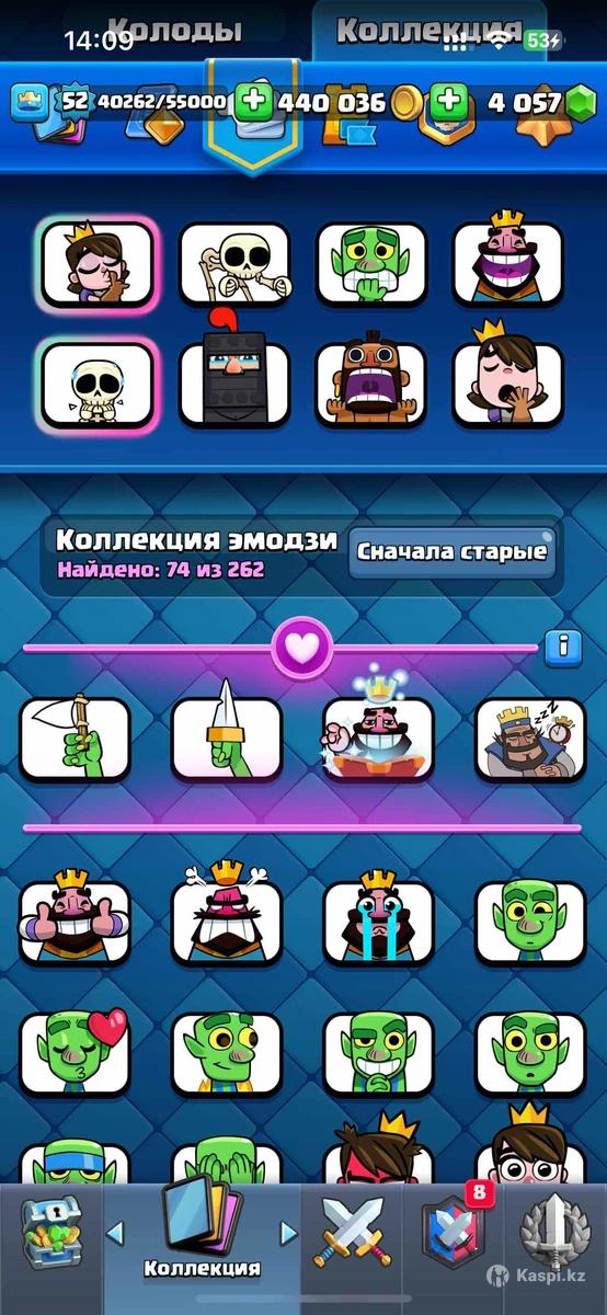 Хороший жирный аккаунт хорошо вкачан спелбейт 4000+ гемов и хорошие эмодзи 14000 кубков