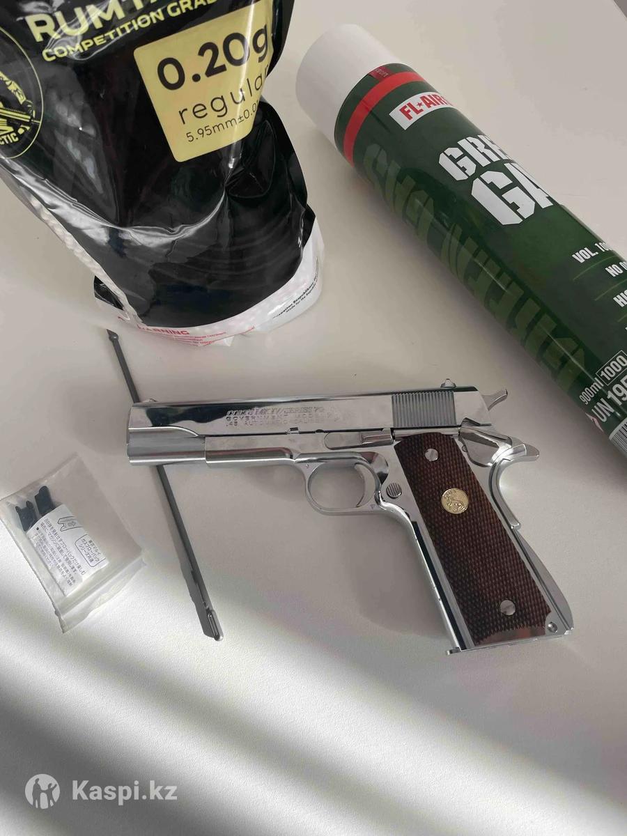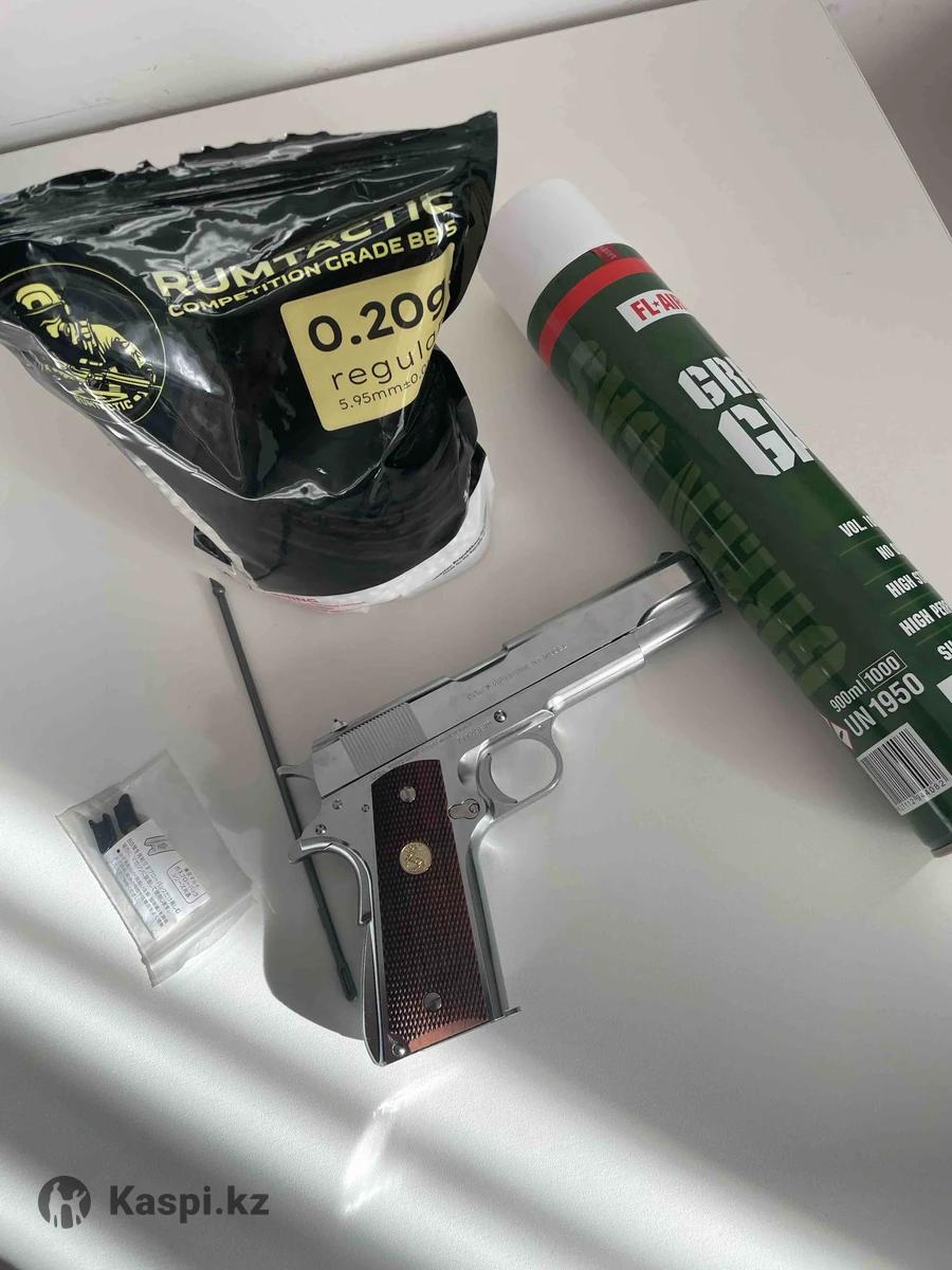 Пистолет colt 1911 страйкбольный, на грингаз, настрел практически отсутствует, все выстрелы по коробке(есть на фото). Дополнительно пачка пулек и почти новый баллон газа. Причина продажи - нужны деньги, а пистолет нет