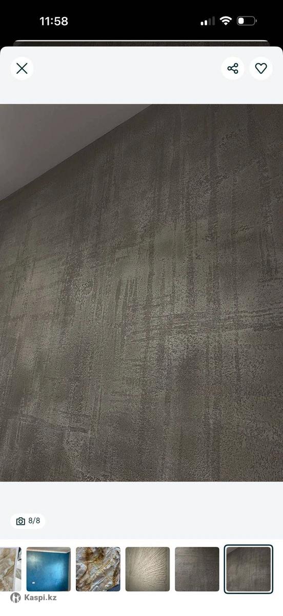 Профессиональное нанесение декоративной штукатурки любой сложности. Работаю аккуратно, чисто и с вниманием к деталям. Специализация: ✔️ Арт-бетон ✔️ Травертин ✔️ Мокрый шелк ✔️ Микроцемент ✔️ Фактурные и авторские покрытия ✔️ Имитация камня, бетона, шелка Помогу подобрать текстуру и цвет под ваш интерьер. Работаю по технологии — без трещин и отслоений. 🔹 Опыт более 5 лет в декоративных покрытиях 🔹 Фото готовых работ предоставляю 🔹 Индивидуальный подход 🔹 Соблюдение сроков 📍 Работаю по Астане 💬 Консультация бесплатно Пишите в Kaspi — отвечаю быстро.