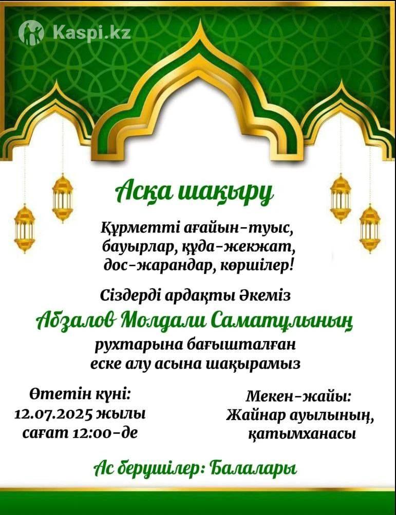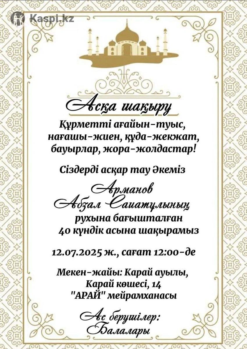 ЕСКЕ АЛУ Асқа Шақыру Мерей той Слайд шоу Электронные пригласительные билеты открытки Тойға шақыру Поздравление с юбилеем пригласительные на свадьбу и т.д. памятное видео Не дорого и качественно. Срок выполнения — от 1 часа до 2 часов. Цена (договорная) от 1000 тг. в зависимости от сложности. Работаю всеми регионами Казахстана удаленно (онлайн). - еске алу с озвучкой - асқа шақыру - тойға шақыру - поздравления - день рождения - сүндет той - память о самом близком - юбилеи - мерей той - пригласительные открытки и многое другое