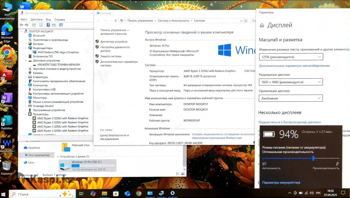 От известного бренда Dell (легкий, тонкий, компактный, современный, стильный Полный комплект сумка, мышка коврик, оригинальная зарядное устройство все имеется Отлично подойдет для большинства задач! Все работает шустро и очень быстро! Скорость включение ноутбука составляет около 5-6 секунд! 1) качественный IPS дисплей с высоким разрешением Full HD 1920×1080 смотреть фильмы одно удовольствие! Очень тонкие рамки выглядит все современно!!! 2) мощный современный процессор Ryzen3-3- го поколение • базовая частота 2.60 GHz • разгон до 4.30 GHz 3) современная видеокарта от AMD Radeon Vega 3 Graphics 4) Оперативная память ОЗУ 8 Гигабайт частота 3200 MHz современная платформа DDR4 5) Операционная система Windows 10 Pro x64 Лицензия 6) высоко скоростной жесткий диск форматом SSD M2 Nvmie 256 Гигабайт 7) аккумулятор держит хорошо хватает до 3-4 часа работы зависит от использования 8) имеет все современные порты 9) качественные и громкие динамики играют очень достойно 10) качественный современный корпус 11) полный комплект зарядное устройство, фирменная сумка, мышка, коврик все имеется 12) все что имеется в ноутбуке все работает любая проверка приветствуется! 13) клавиатура с подсветкой Звоните Небольшой Торг уместен