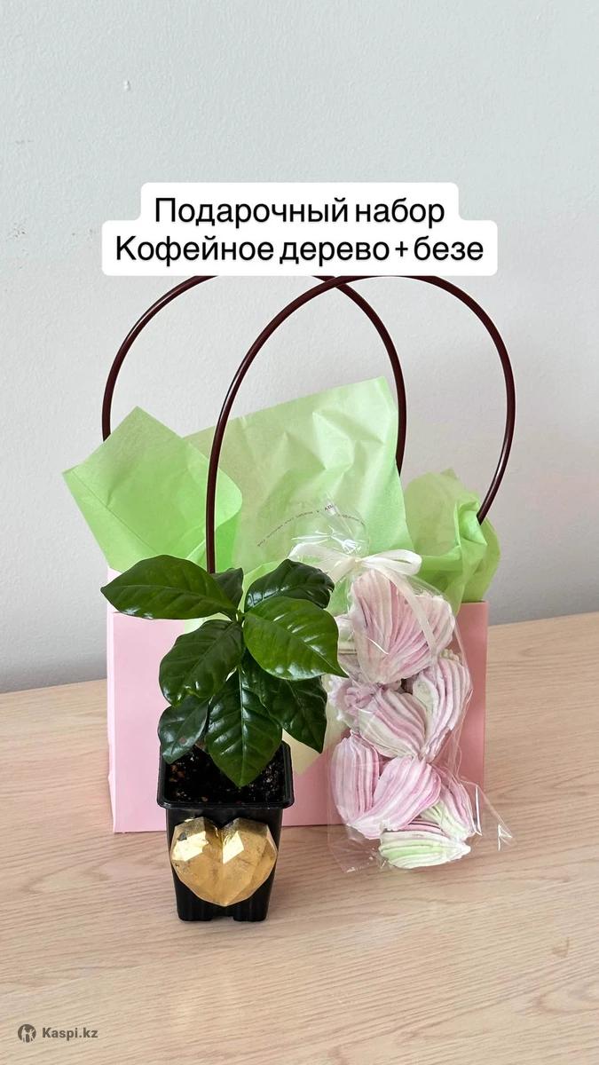 Порадуйте любимых и близких оригинальным подарком - живыми комнатными растениями с безе в виде сердечек на Наурыз, день рождения, в качестве комплимента. 6 вариантов на выбор: 1) сортовой фикус «Adalbert Bogner” и безе 2) гуава и безе 3) мурайя (японский жасмин) и безе 4) кофейное дерево и безе 5) сортовой бальзамин и безе 6) крассула (денежное дерево, толстянка). Подарив денежное дерево, вы символически дарите богатство и удачу. Стоимость: 3500 тенге/набор Также есть возможность оформить корпоративный заказ.