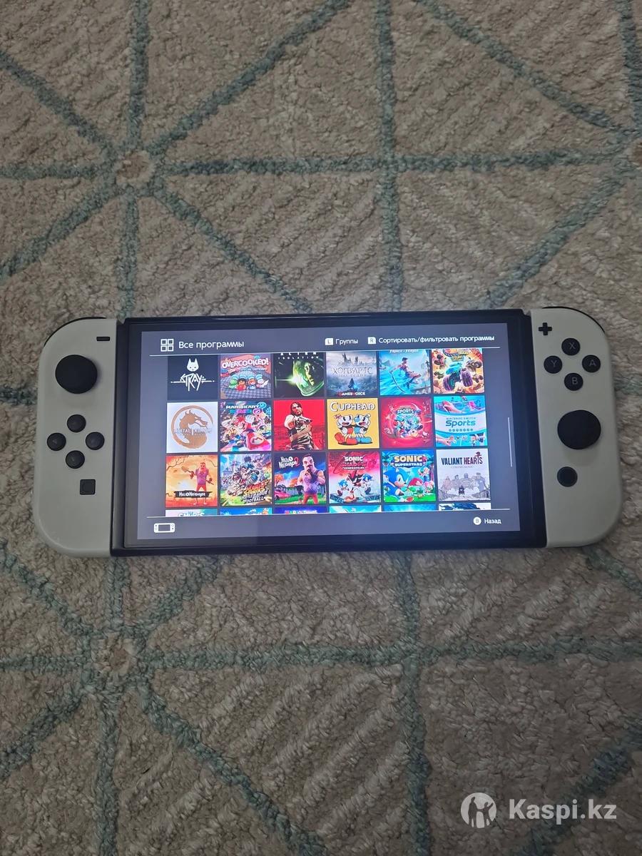 Продам игровую приставку Nintendo Switch OLED от Nintendo. 40 игр + 512 gb флешка [топ игры : fifa 26, ведьмак 3 , ассасин, хогвартс и др.] ✅ Состояние отличное, аккуратно использовалась ✅ Яркий OLED-экран 7″ — сочные цвета, без выгораний ✅ Работает как от телевизора, так и в портативе ✅ Джоконды без дрифта, все полностью исправно ✅ В комплекте: док-станция, зарядка, HDMI, держатель для джойконов, коробка