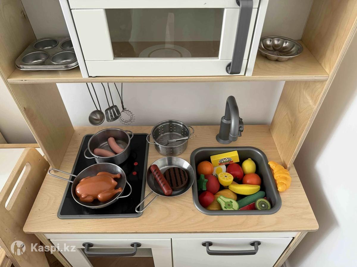 Детская кухня IKEA В хорошем состоянии. Натуральное дерево, очень устойчивая и качественная. Есть плита, раковина, духовка, микроволновка. В комплекте посуда и продукты (как на фото).