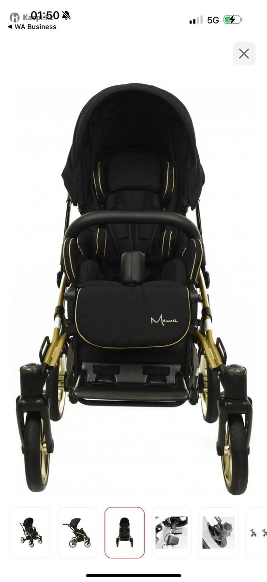 Детская коляска MyWam MW-Mewa – ваш надежный спутник в уходе за маленькими героями. Сочетание стиля, комфорта и безопасности делают эту кресло-коляску непревзойденным выбором для особенных детей. Изготовленная с золотистыми акцентами на элегантной черной раме, эта коляска объединяет в себе великолепие и практичность. Надежная конструкция с прочной рамой и большими золотистыми колесами обеспечивает стабильность и плавность хода, привлекая внимание своим стильным дизайном. Эта коляска легко справляется с различными поверхностями, обеспечивая комфортное передвижение. Комфорт вашего малыша – наш приоритет. Мягкое сиденье с регулировкой наклона спинки позволяет создать максимально удобные условия от сидячего до лежачего положения. Защитный козырек с окном обеспечивает тень и защиту, сохраняя визуальный контакт с вашим ребенком. Характеристики MyWam MEWA - Длина коляски 94 – 126 см - Ширина коляски 65 см - Высота коляски 124 – 129 см - Общий вес 20 – 28 - Эффективная глубина сиденья 24 / 28 см - Ширина сиденья 25 / 32 см - Высота спинки 62 см - Ширина спинки 20 / 30 см - Расстояние от подножек до сиденья / количество регулировок 17 – 32 см / 5 позиций - Длина коляски сложенной для транспортировки рама 84 см / сиденья 88 см - Ширина коляски сложенной для транспортировки рама 64 см / сиденья 43 см - Высота коляски сложенной для транспортировки рама 26 см / сиденья 42 см - Максимальный вес пользователя 40 кг - Рост пользователя 90 – 125 см