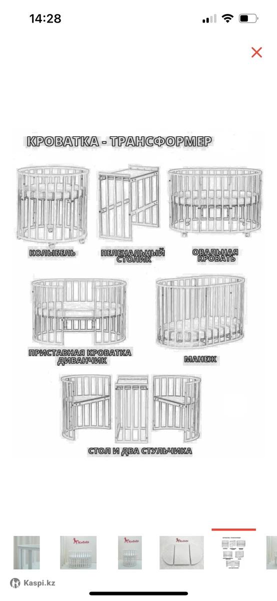 Кровать трансформер 7в1 с ортопедическим матрасом + чехол. Размер круглый 125х75см