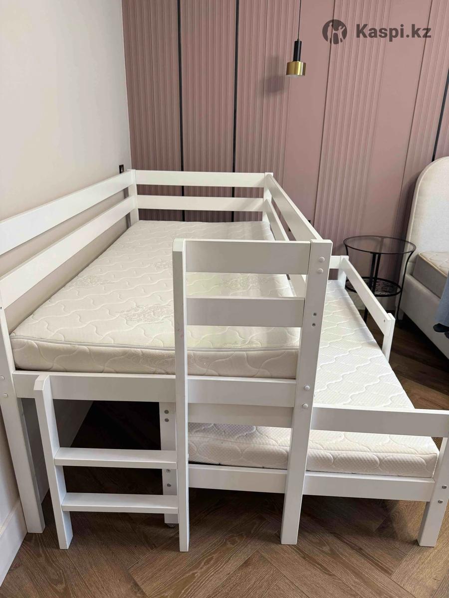 Кровать детская трансформер в два уровня подойдут детям от 1 года и до 7-9 лет. Очень качественные экологичные материалы из дерева, удобные ортопедические матрасы, компактные и мобильные, можно поставить как в одну, так и врозь. Брали в детском мире за 150 тысяч кровать и отдельно матрасы. В идеальном состоянии. Отдам за 50000 тнг
