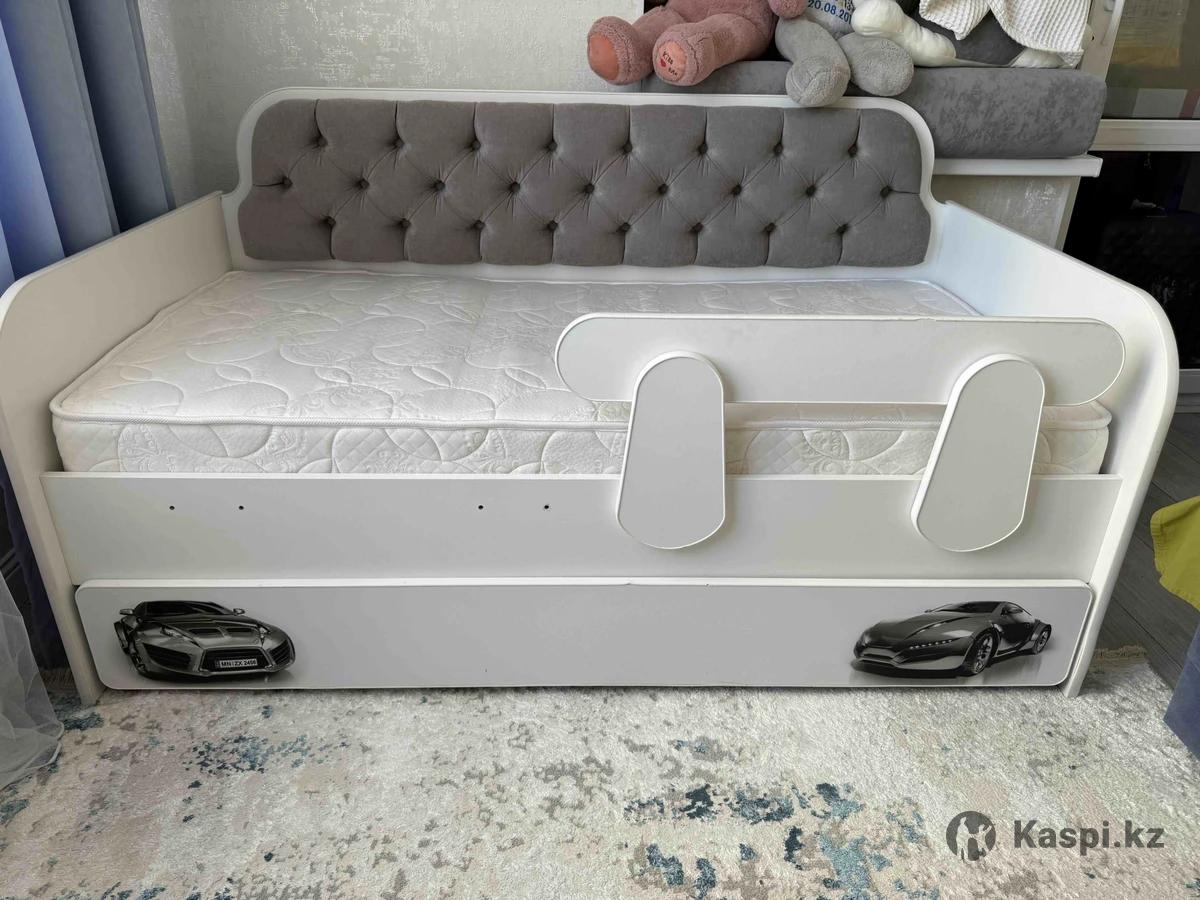 Кровать в хорошем состоянии. Матрас двухсторонний , чистый. Полка внизу выдвижная. Покупали за 170000 тенге