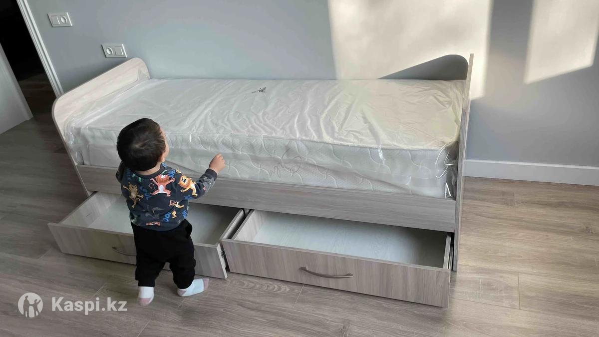 Кровати в хорошем состоянии, прочные, устойчивые. Сколов, трещин, царапин нет устойчивые. Только наклейки. Их можно отмыть. Две детские кровати с матрасом, с выдвижными ящиками. каждая 20000. (Матрасы новые в упаковке). Одна кровать детская без матраса 10 000 тенге. Самовывоз. Район казбакалейторг.