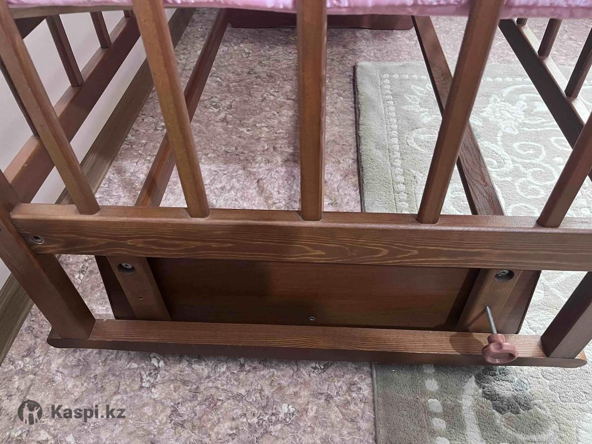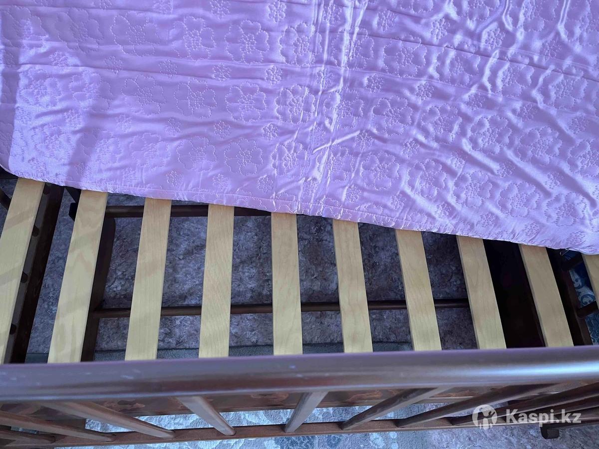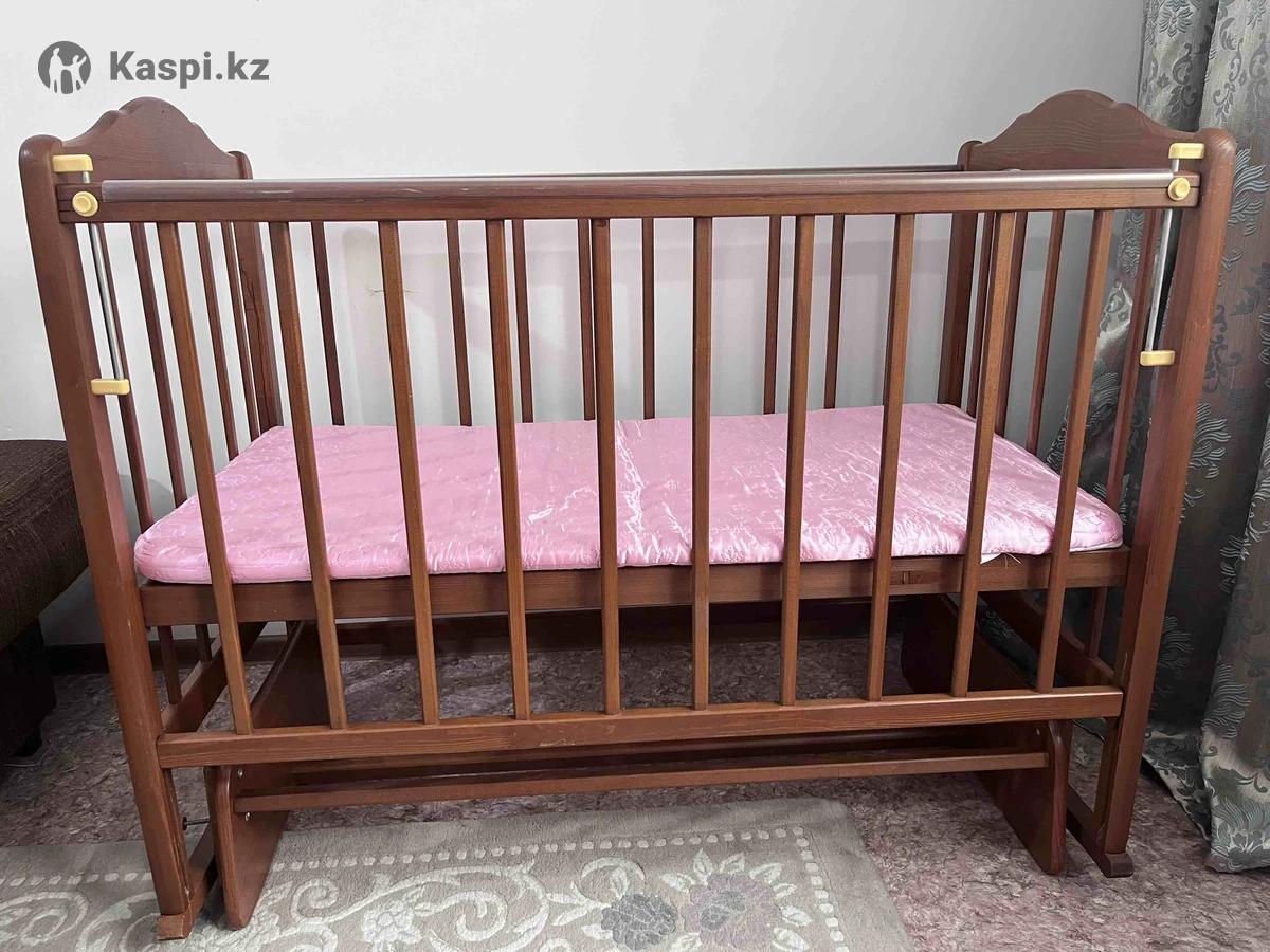 Детская кроватка б/у. В отличном состоянии. Материал дерево. Также можно использовать как люльку, то есть можно качать. Матрас в подарок. Производство Россия. Ребенок до 4-5 лет может спать. Балаларга арналган кереует сатылады. Сапасы оте жаксы. Тербетип те уйыктатуга болады. Узын ари кен.