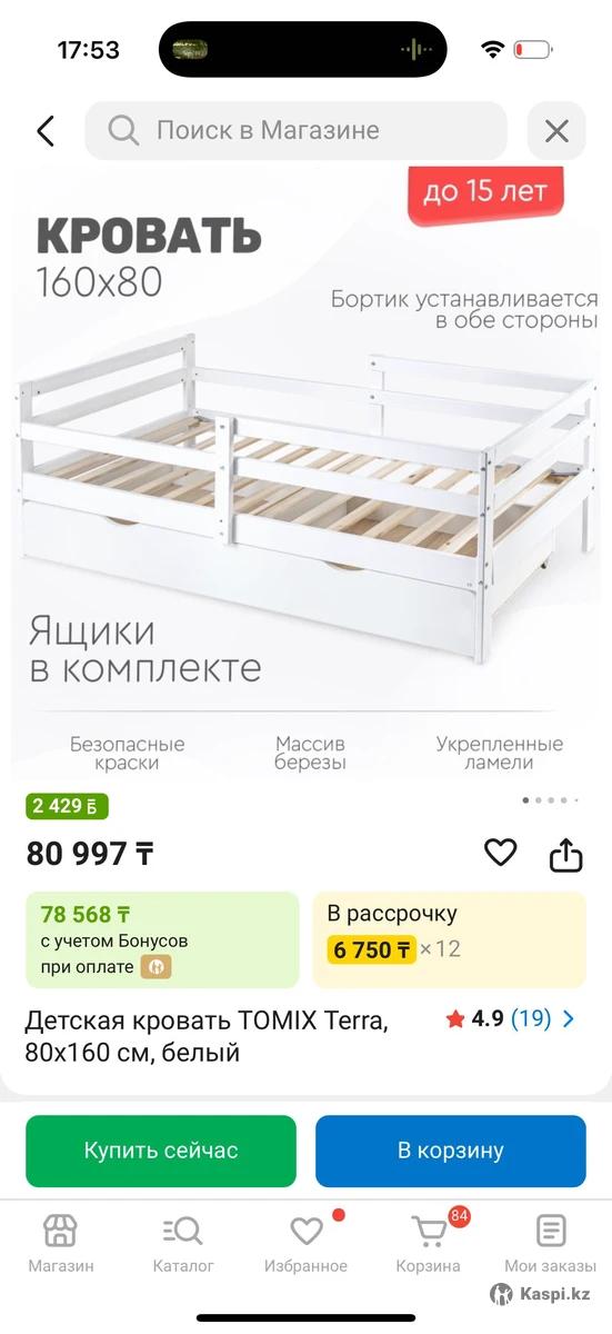 Купили кровать 160х80, ни разу не спал! Имеется выдвижные ящики, бортики ставятся с обеих сторон. Цена 70.000 с матрасом