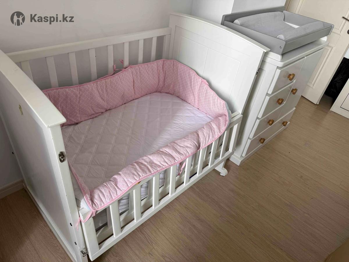 Продается детская кровать и комод. Передняя часть кровати открывается на половину, а на комоде сверху есть пеленальный столик. В комплекте с кроватью поставляется матрас, наматрасник и бамперы. Также могу отдать 3 простыни на резинкеПеленальный столик комплектуется матрасом. Кровать и простыни мало использовались.